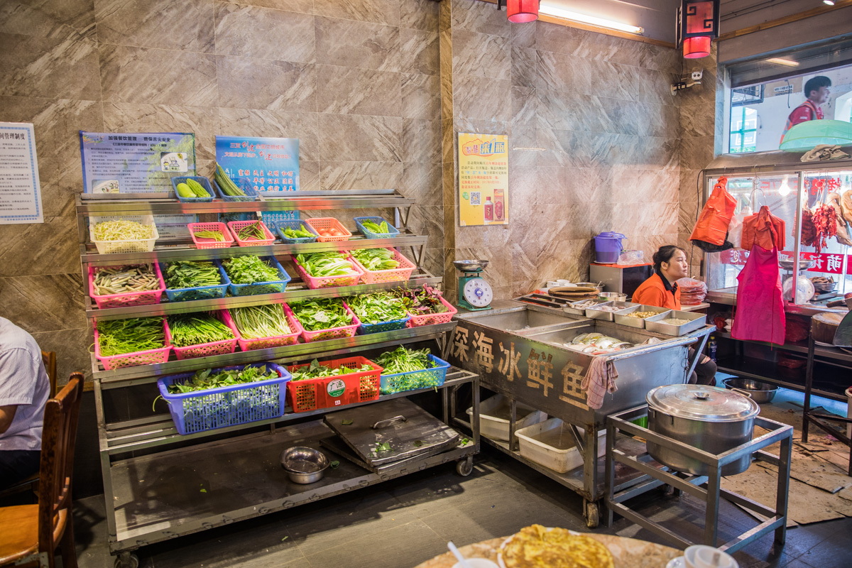 按照网上的推荐点了一盘白切羊肉,一盘生羊肉片。白切羊肉是带皮的,生羊肉片是经过腌制调味的,需要工作人员帮忙煮,其实自己也可以煮,但是火候控制不好就会影响到羊肉的口感。