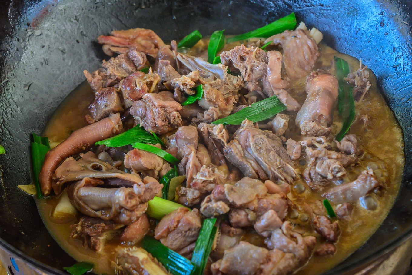 吃到差不多的时候可以加汤煮烫菜吃,因为干煸老鸭的汤很香,所以煮出来的蔬菜也极好吃,用的火是也是木炭火而非煤气,感觉很有意思。