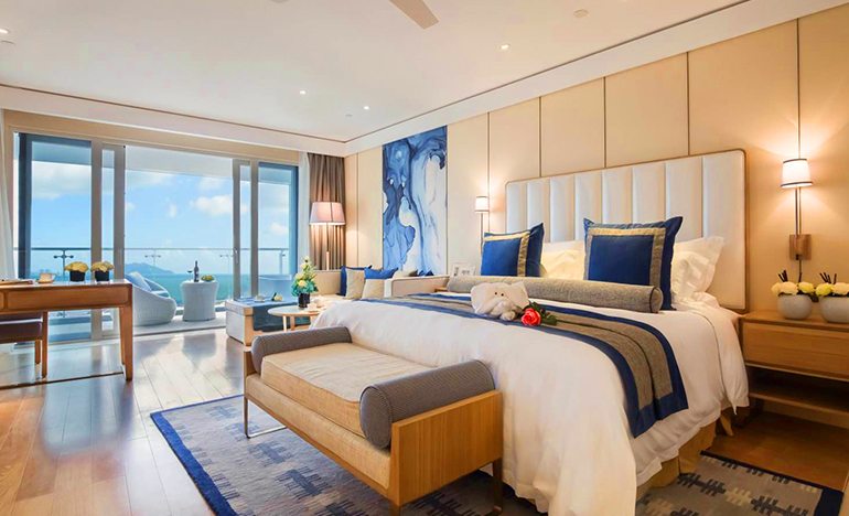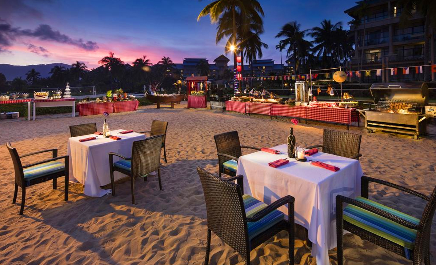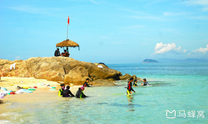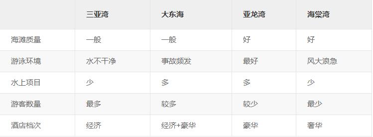 离市区最远、开发也最晚的海棠湾,优缺点非常鲜明:一方面,人少清静,水清沙白;另一方面,餐饮购物等配套设施不完善,且不论是海湾内部的交通还是到其他海湾的交通都不便利,这边吃的一般就是酒店里吃,或者点外卖