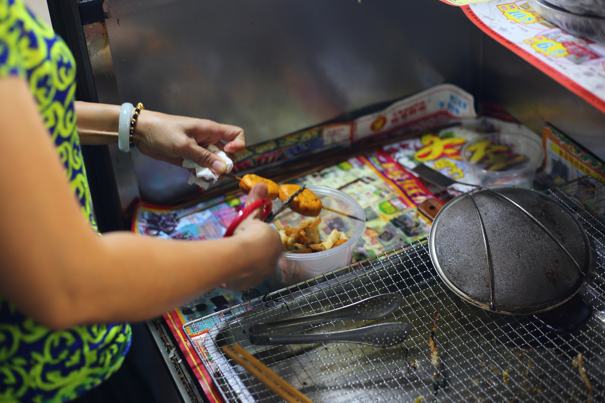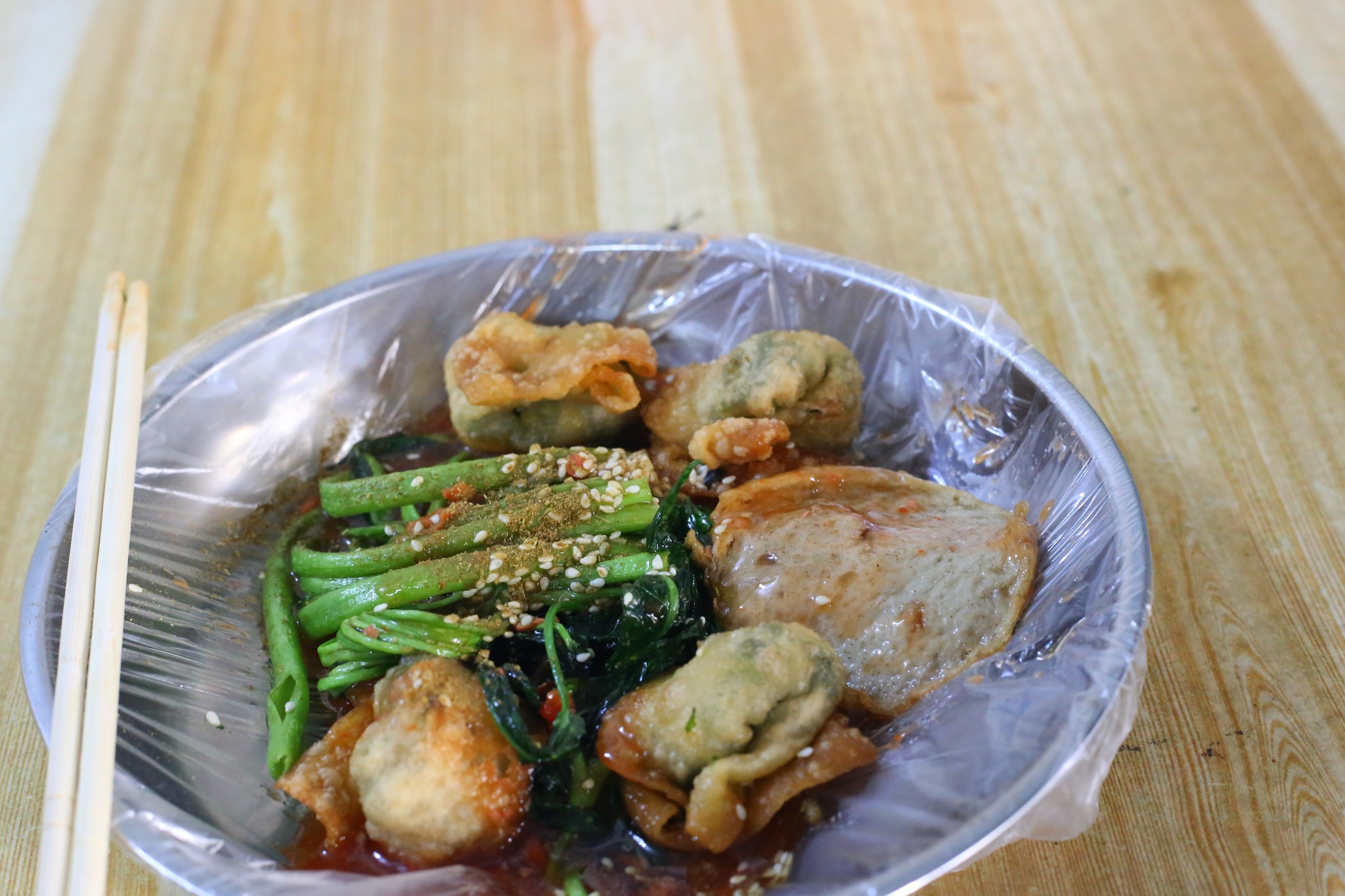 点评上说来他们家必吃的有这么三样:空心菜、饺子、鱼饼,都是3元每串,所以抱着试试的想法,我保守的先选择了这么三种,话说胖姐,其实一点都不胖,本地人大家应该都知道是比较苗条的,所以这个胖姐的名字我实在是想不出是怎么来的,大家可以脑补一下美丽的胖姐,这里我就不放照片了,给大家一个想象的空间。