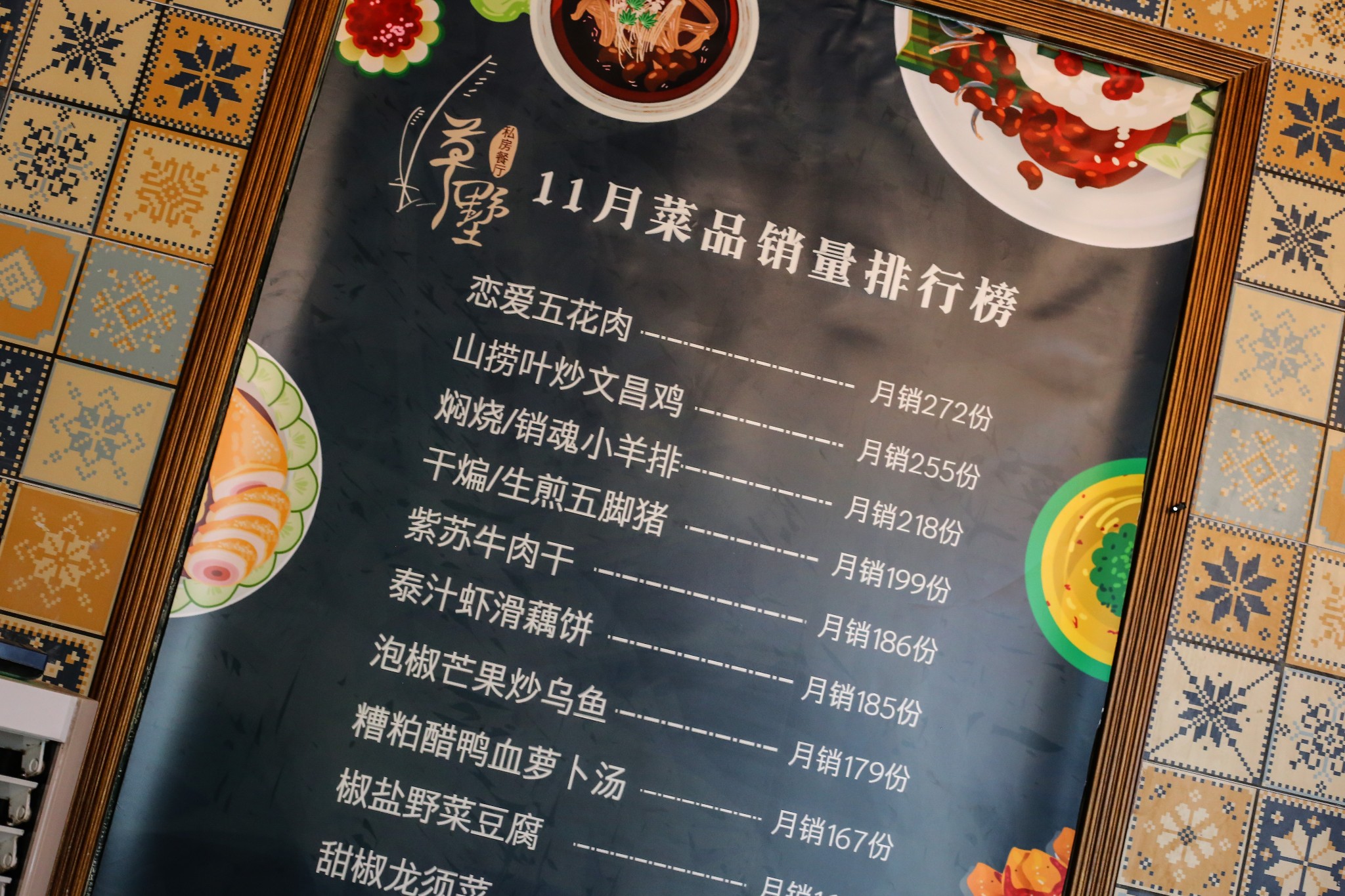 点菜的时候这张菜品销量榜吸引了我,前台小妹也给我解释说,因为我们家是私房菜嘛,所以都是采用上等的食材,就像这海南四大名吃中的文昌鸡、东山羊,我们并没有采用传统的做法,所以根据小妹的解释,我尝试着点了几个他们家的招牌菜品。