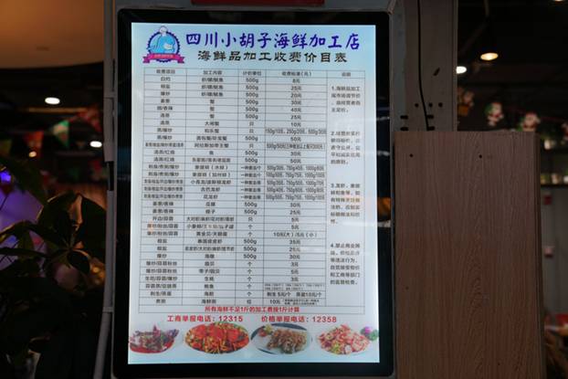 而且工商局现在统一规定又不允许餐馆的商家带客人去市场买海鲜。后来才知道小胡子川味海鲜的服务员推荐他们自己也开了一家海鲜卖场,价格公道。虽然说的很好,又是经人介绍,心中也难免打鼓,于是从小胡子海鲜自家的卖场问好价格又溜去了第一市场询问,走了一圈比对之下,小胡子海鲜自家的卖场确实比第一市场的价格实在,足斤足两且新鲜不贵。于是又回到了小胡子海鲜的卖场直接购买海鲜在加工。