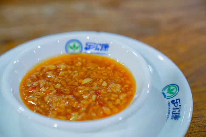 满满的一大锅秘制酱料,一般回头客或者熟人,胖姐会直接放很多蘸料在上面,所以我也相信很多人都是冲着这独门秘籍来的。倘若是第一次来试吃,一般会先放一点,让吃客们慢慢适应这个味道,真心觉得好吃,才会再询问是否多放一些。