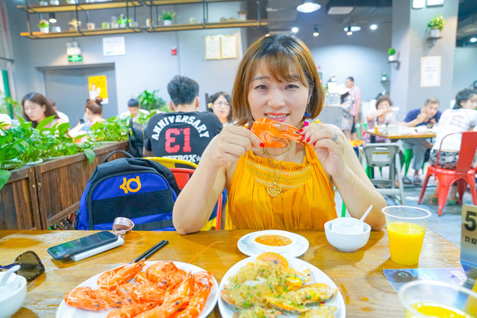 店里慕名而来的人特别多,龙虾我喜欢蒜蓉粉丝蒸的做法,还未入口,只看龙虾的色泽就让人欲罢不能。小胡子海鲜不亏是这里的招牌老店,海南海鲜川味做法,运用独家的秘制香料,麻辣与海鲜的结合,却不掩盖海鲜的鲜味,超棒的舌尖体验。最后我只能用“片甲不留”来对待这些让人欲罢不能的舌尖美味。