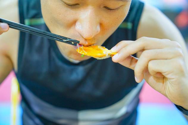 脆皮烤鸭的口感有点甜甜的,吃的时候不需要蘸调味,味道还不错,可能是连续吃了好几天,担心长胖要控制体重的缘故,觉得有点油腻。