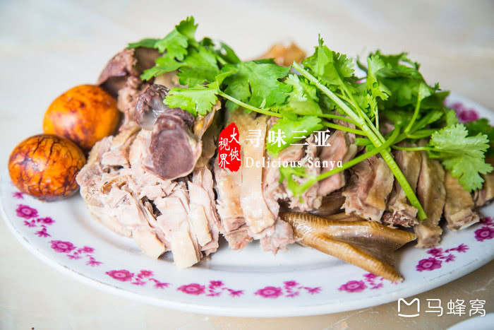 山捞叶农家鸡,采用土生土长的文昌农家小公鸡,肉质紧实饱满,搭配山捞叶,这是一种生长在椰树和槟榔树下面有着特殊味道的胡椒科植物,具有祛风散寒、暖胃等功效。因为山捞叶本身就有种清香的味道,搭配上肉质鲜美而又不柴的文昌鸡,一改传统海南名菜白切文昌鸡的做法,不仅最大限度的保留了鸡肉本身的味道,而且后期的调味料反而使得主菜更加入味可口。
