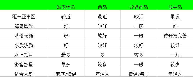 岛屿类: 蜈支洲岛 ,西岛,分界洲岛