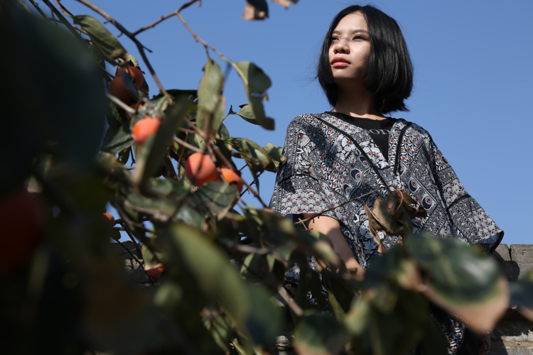 有时候照片的好看与否和被拍摄者本身的美丑无关(毕竟头发挡了半张脸也看不出美丑了~)。也许是画面色彩协调上出现了问题。所以想要拍出好看的照片,还要注意拍摄场景主色调与衣服色彩的合理搭配。