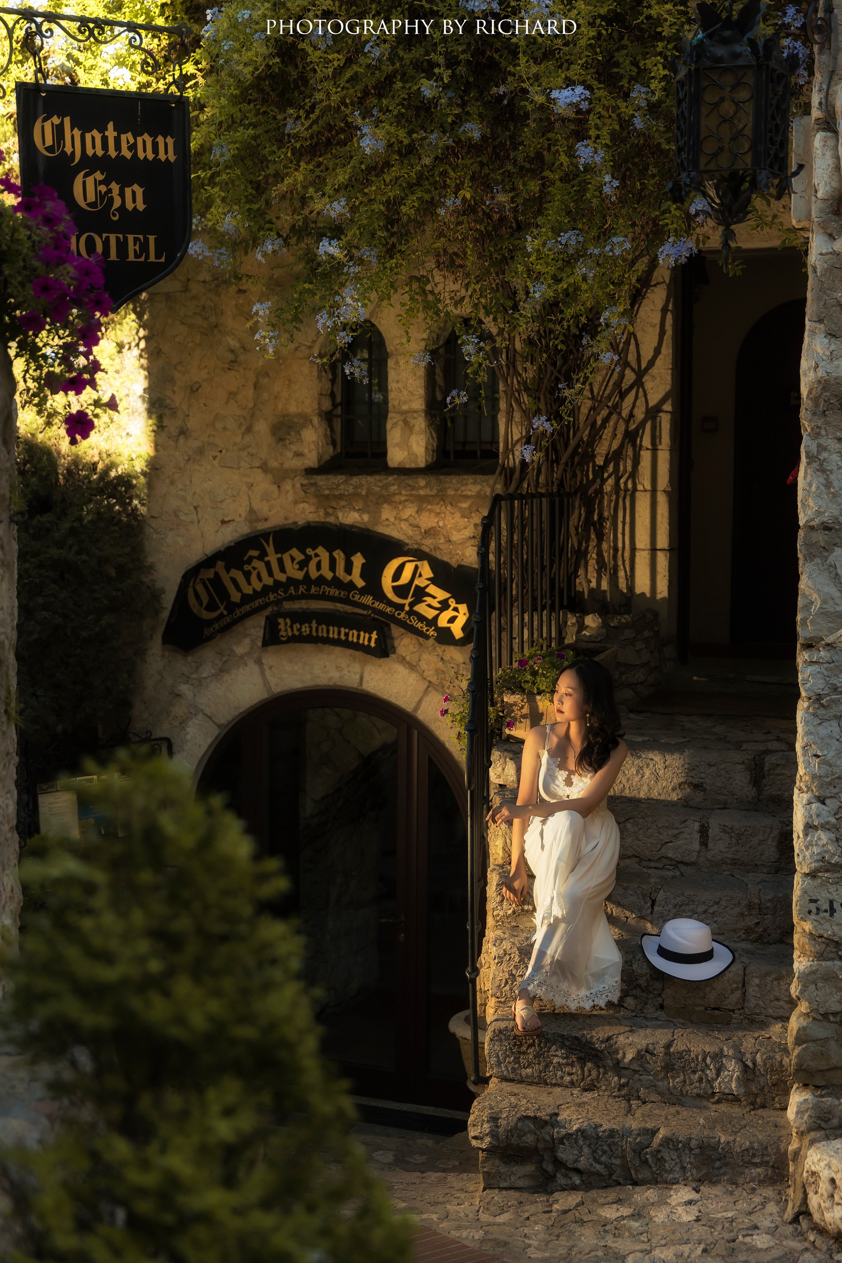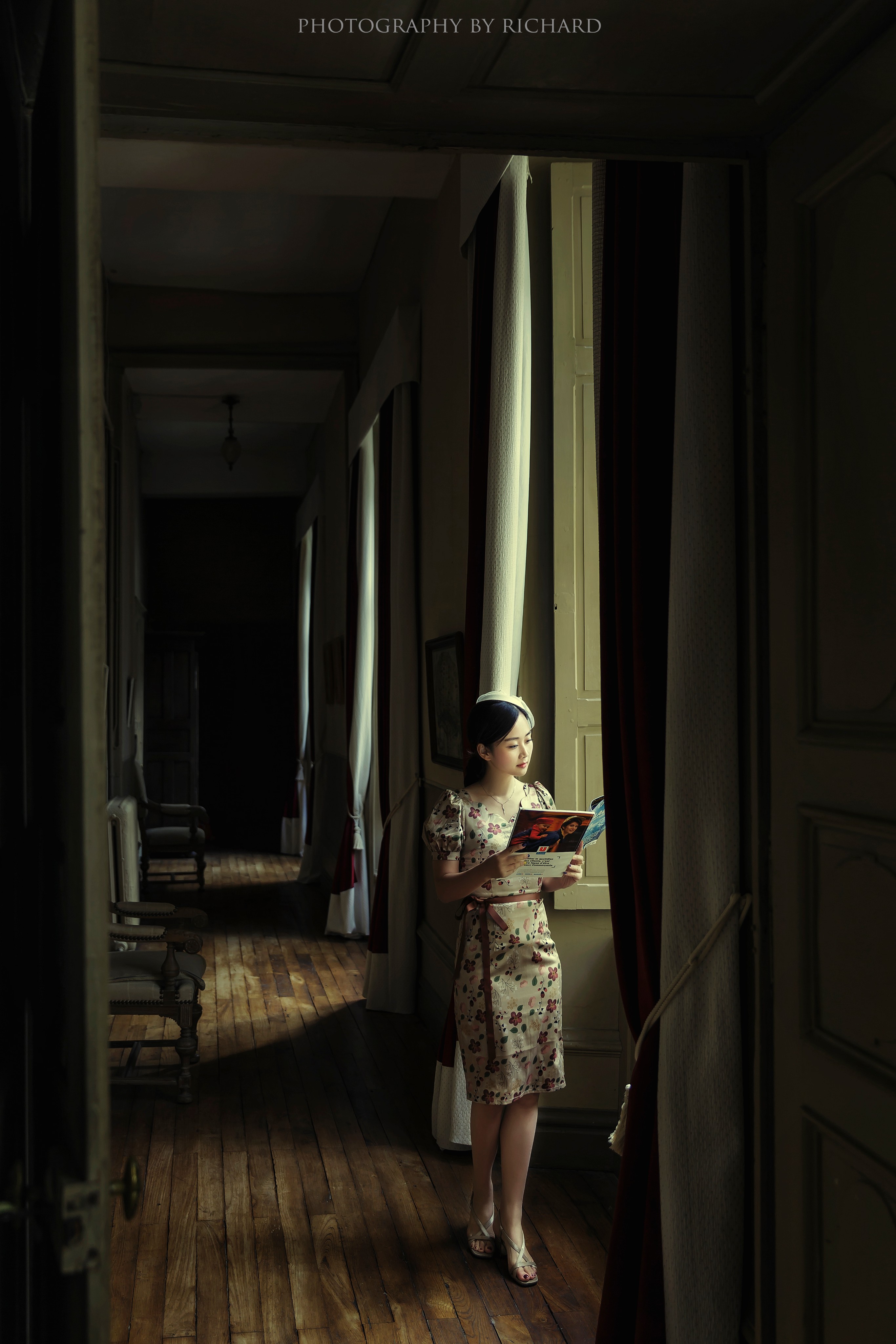城堡的内饰比较华美,在服饰选择上也尽量与之配合。我会选择缎面的碎花连衣裙和同质感的高跟凉鞋,在光线照射下会有反光效果,色系也与内饰协调一致。