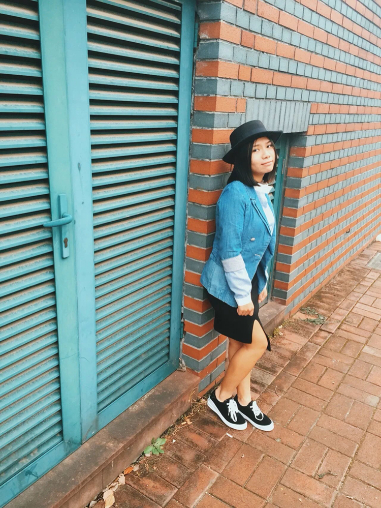 把自己想象成蓝色的色块,蓝色衣服也能搭配蓝色的背景。