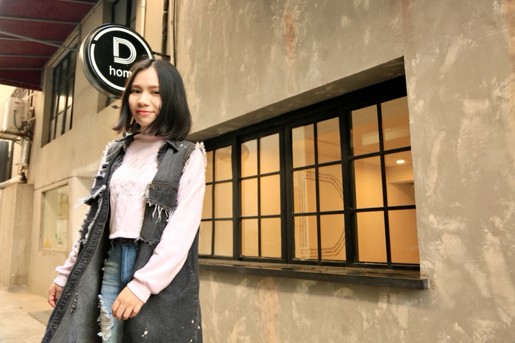 粉色的内搭加上黑色的马甲,选择无色系灰、黑为背景,照片色彩看起来也是很和谐。