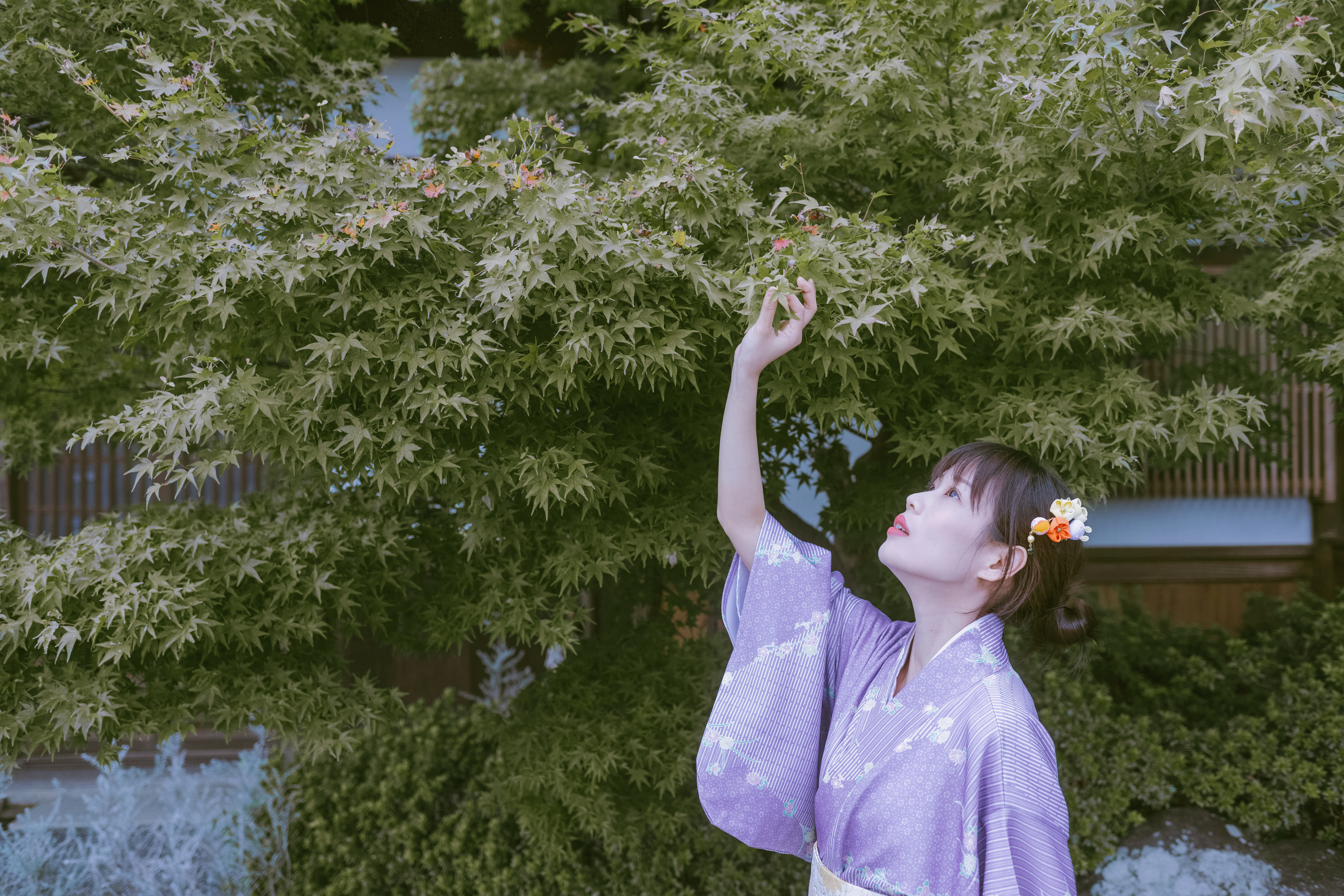 日本有一种清新的调调,但枫叶季的日本会稍显浓郁,可以选择传统和服,色彩偏清爽明亮一些。