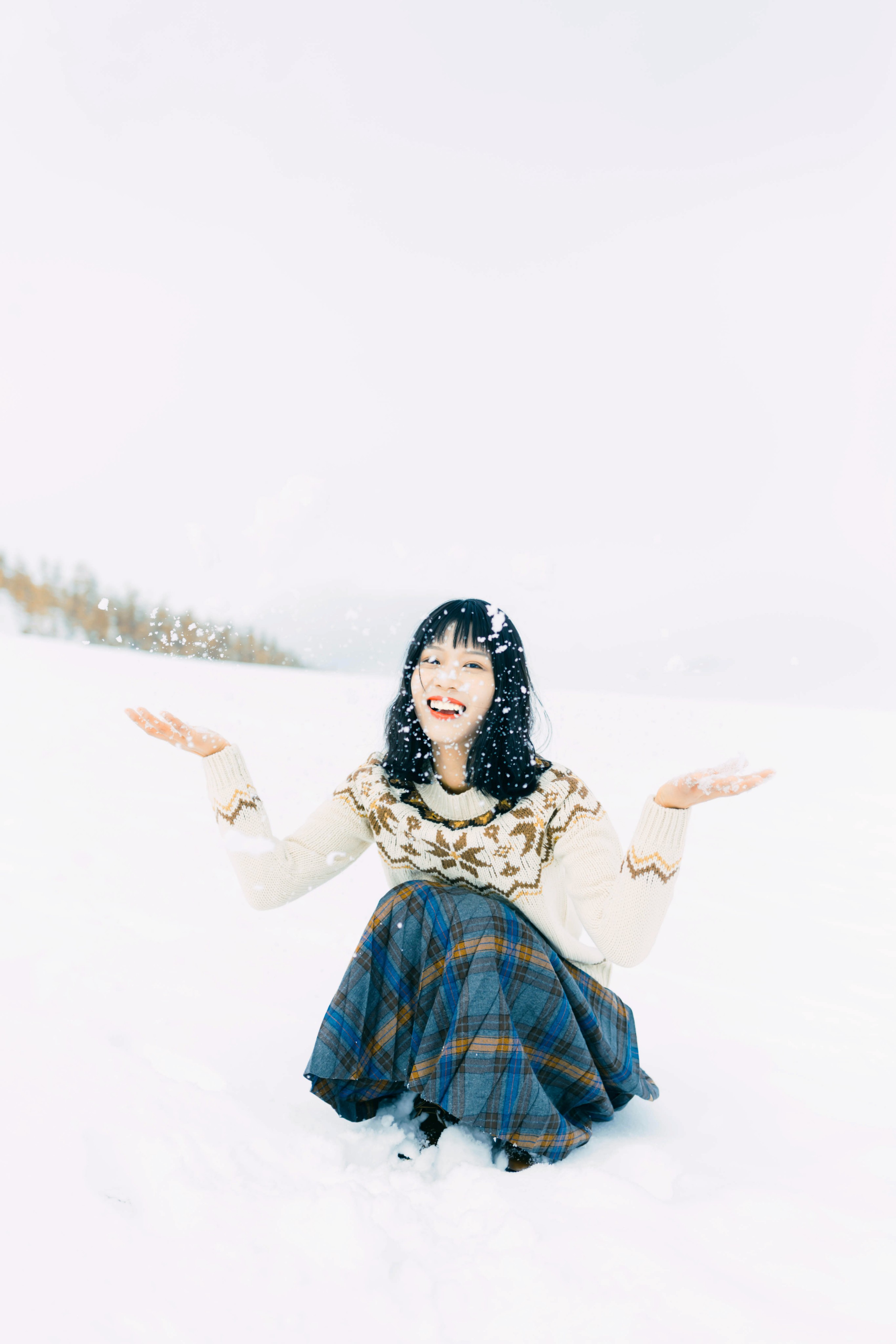 雪中搭配红色的服装,都能起到比较好的对比效果。