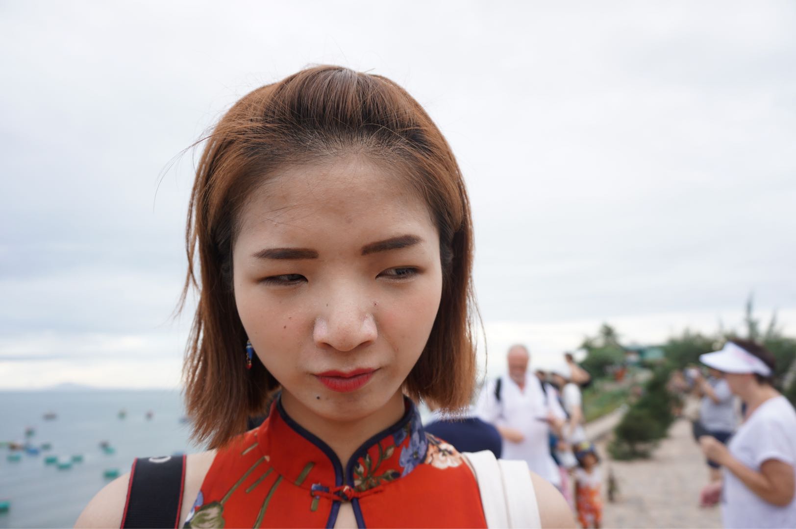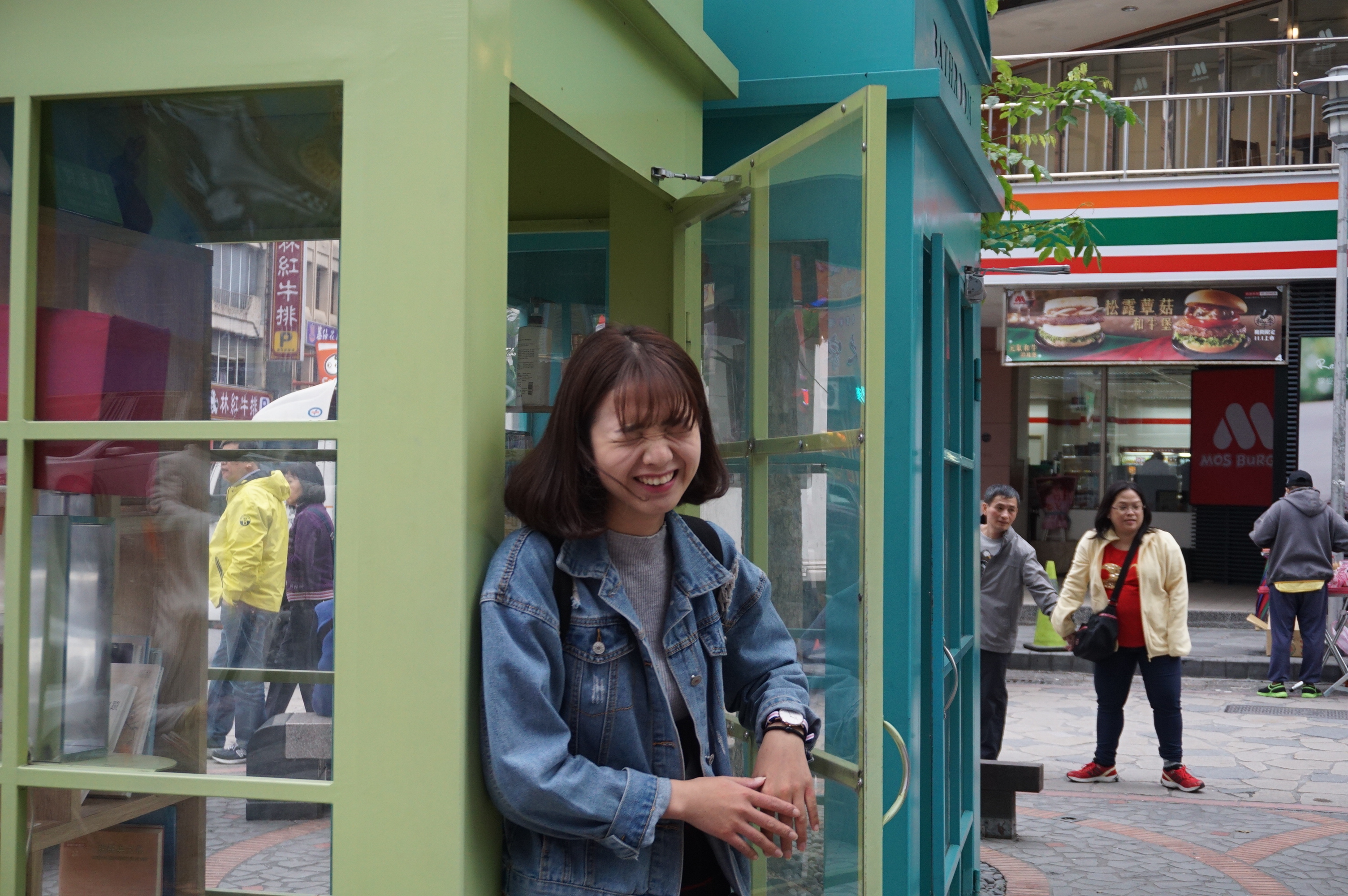 ,人物:被偷拍而浑然不觉的我,背景:怎么看都是乡下姑娘进城买货即视,而且还是五五身,想哭哭不出来。这迷一般的镜头感~