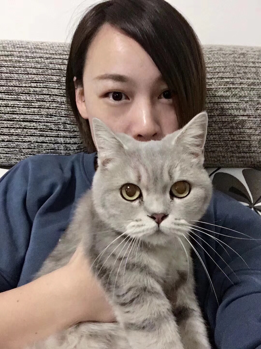 Last:与猫咪合影,她的自拍