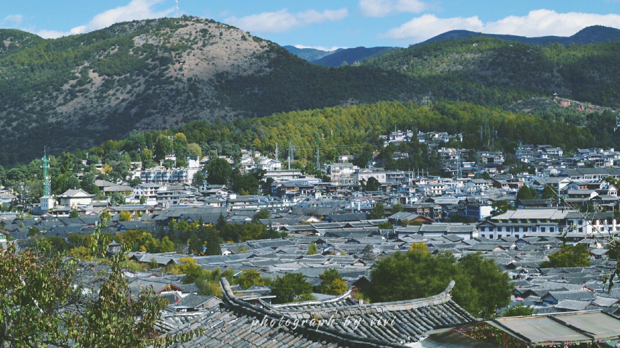 在丽江古城的狮子山,晒太阳,远眺整个古城,不管是白天还是黑夜。