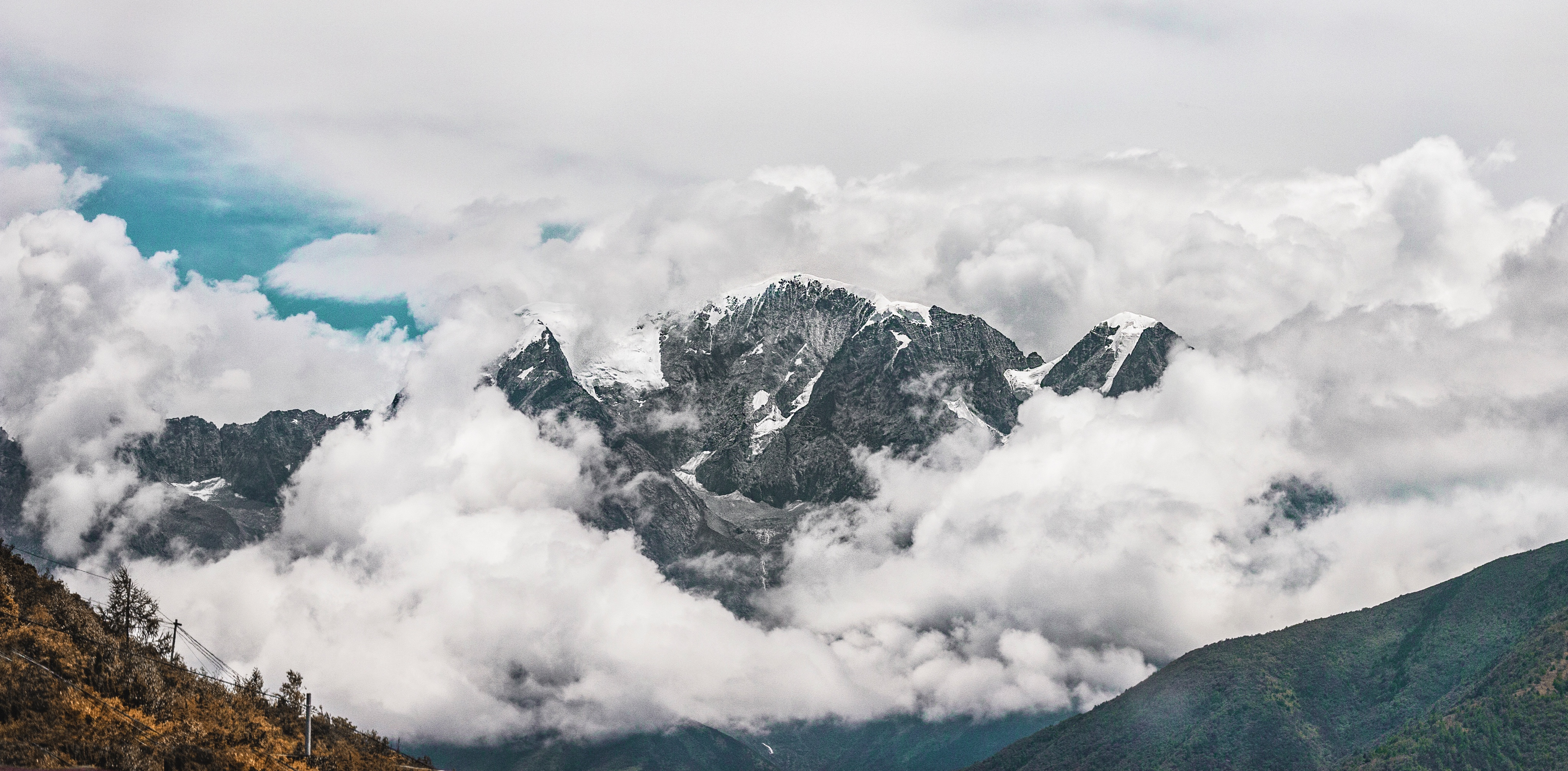 在秦岭分水岭的最高处感受体力极限后站在高处的自豪。