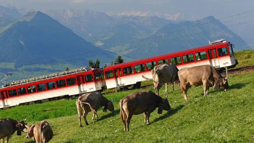 上山时搭乘红色齿轮小火车VRB,切记:尽量靠左侧窗,可沿途观赏美景。