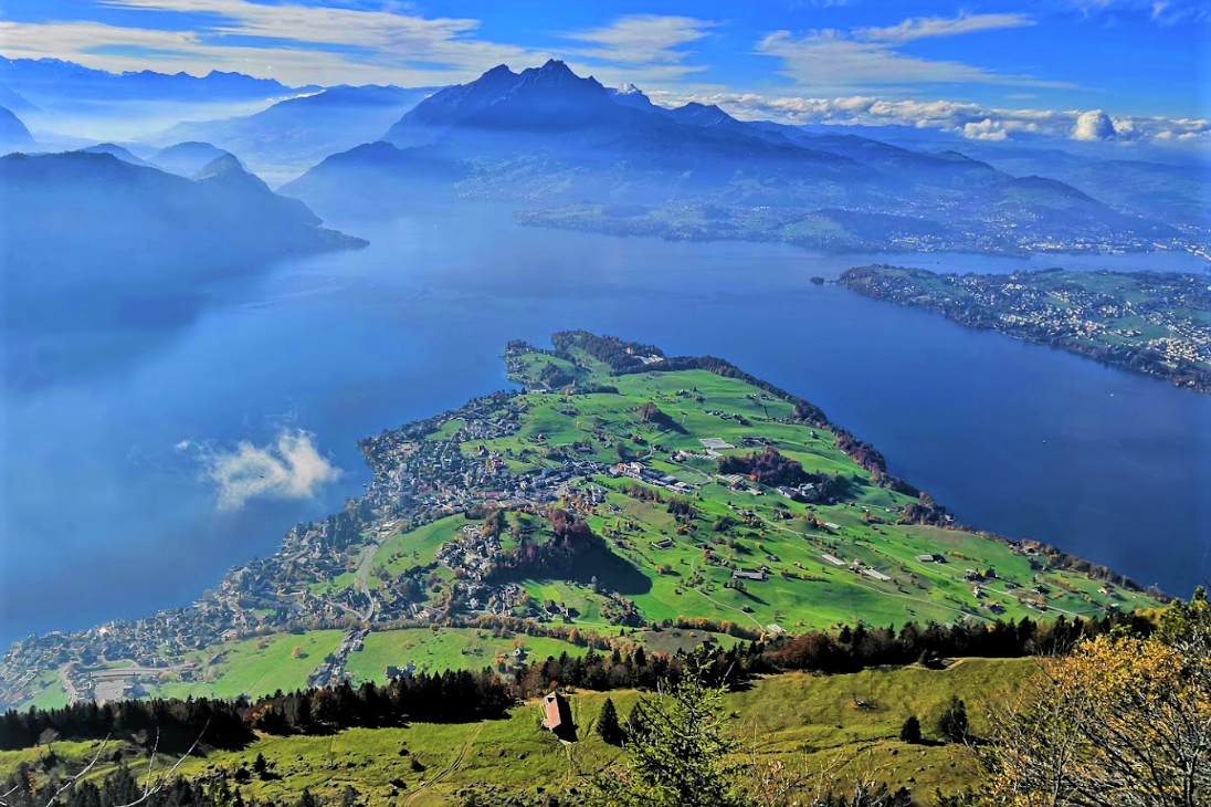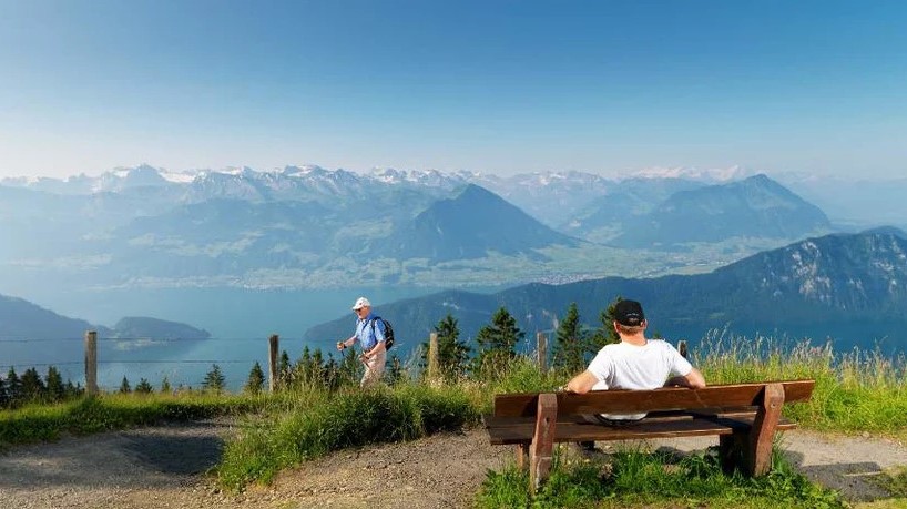 瑞吉山上可以看到阿尔卑斯山脉的壮丽美景。