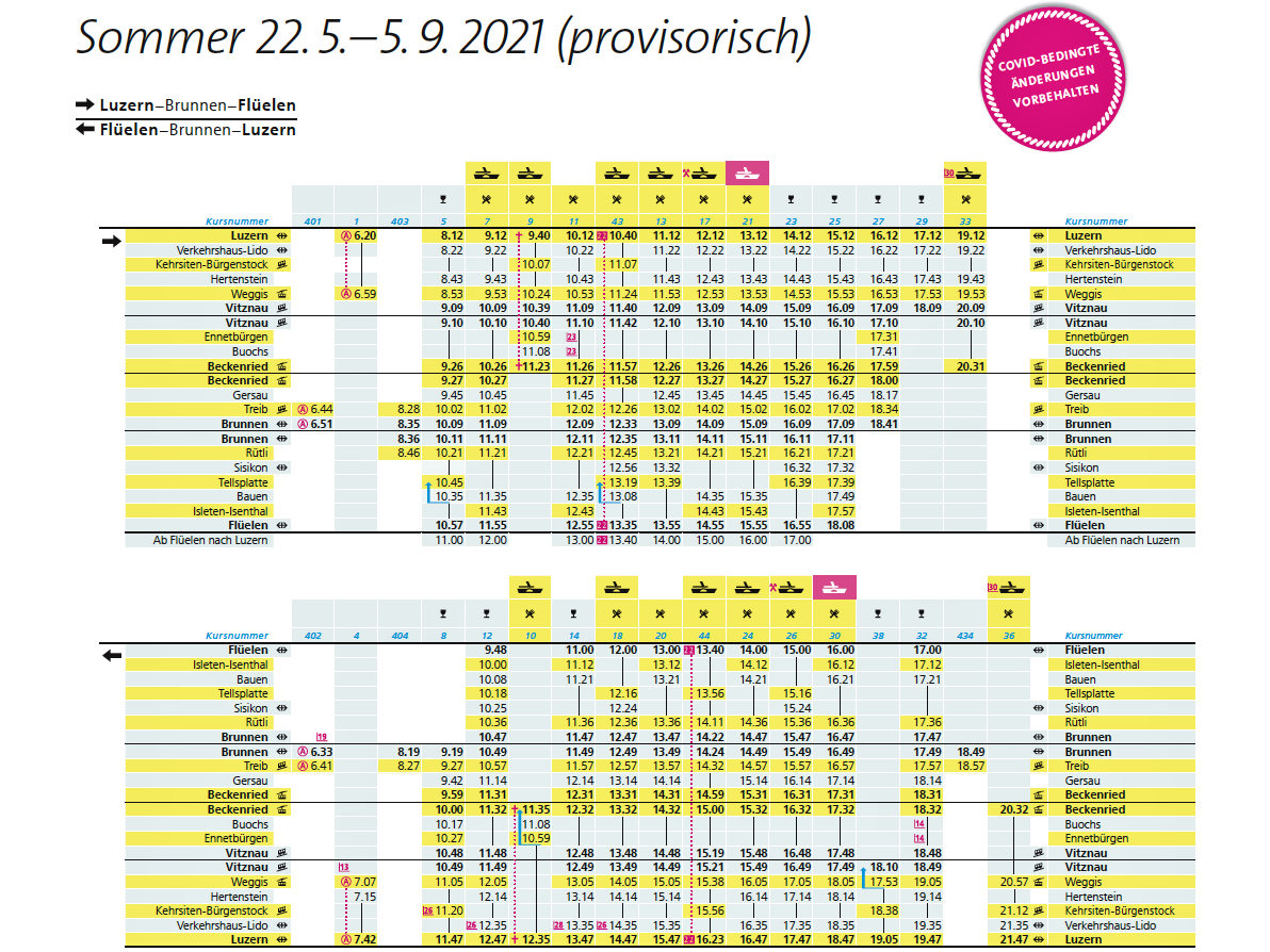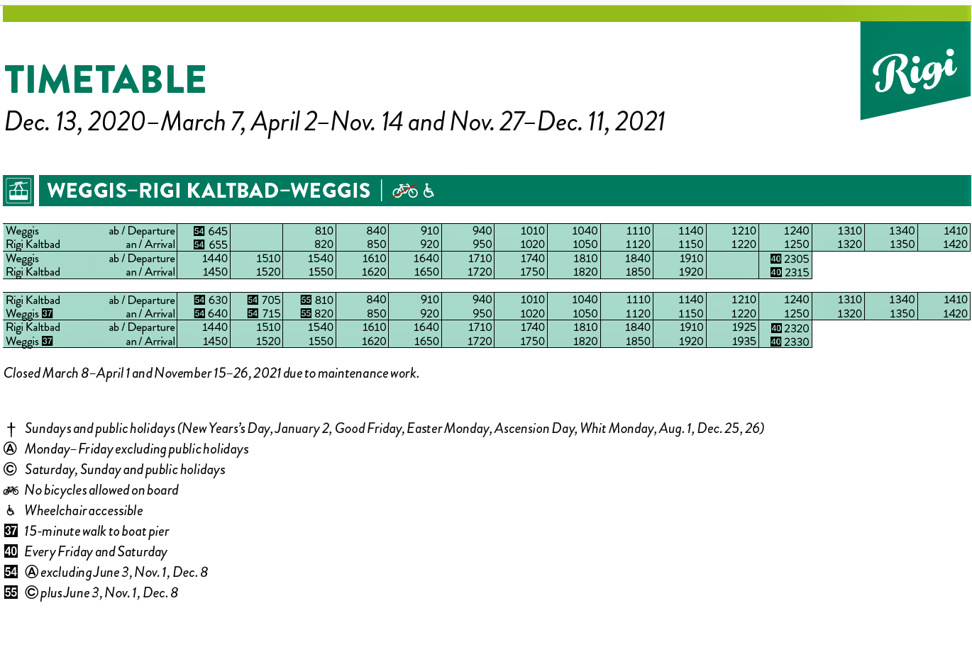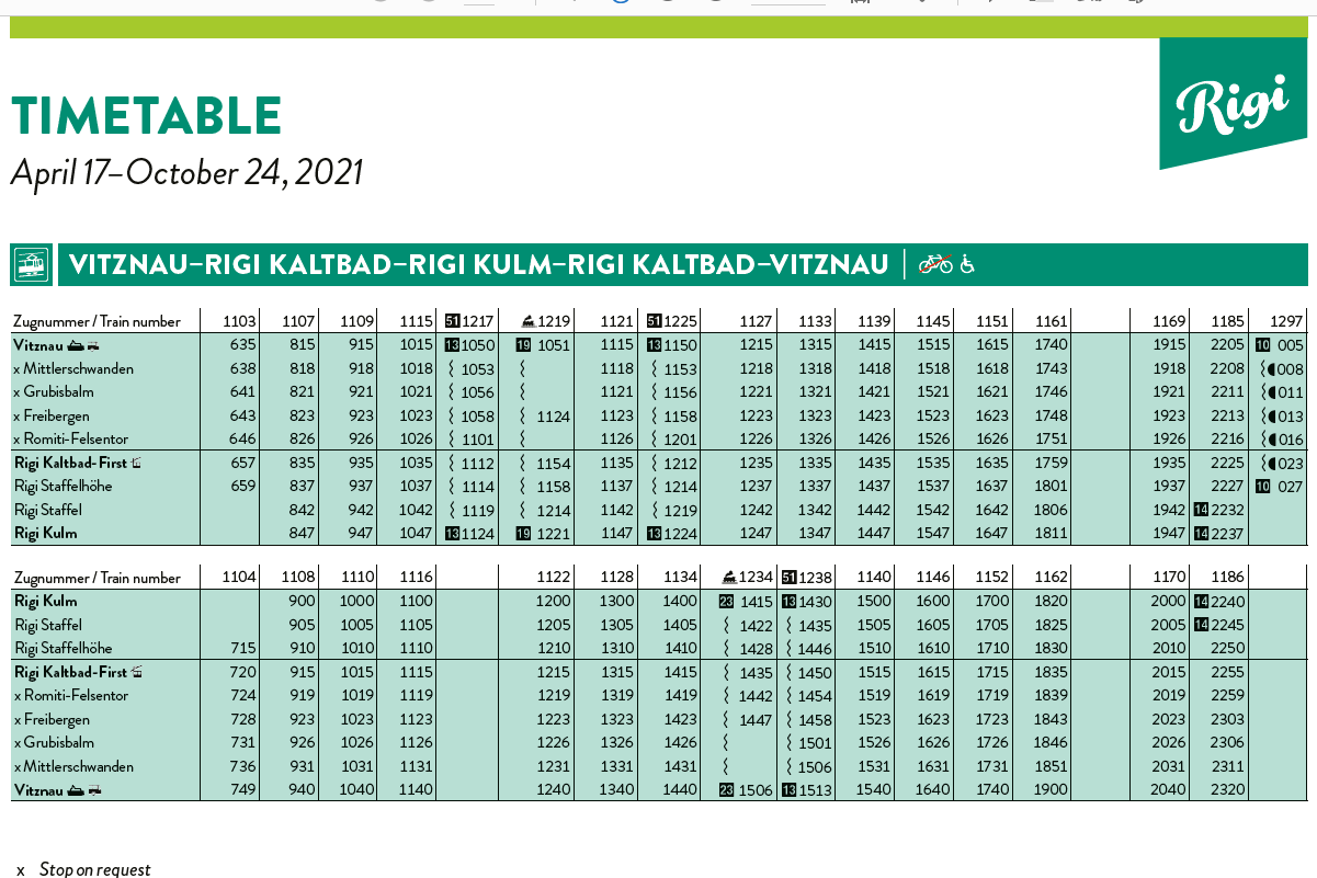 维茨瑙齿轮火车时刻表(2021年4月17日~10月24日)