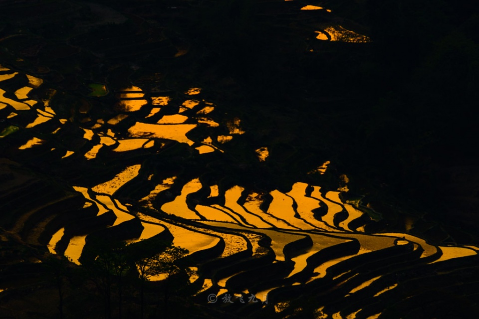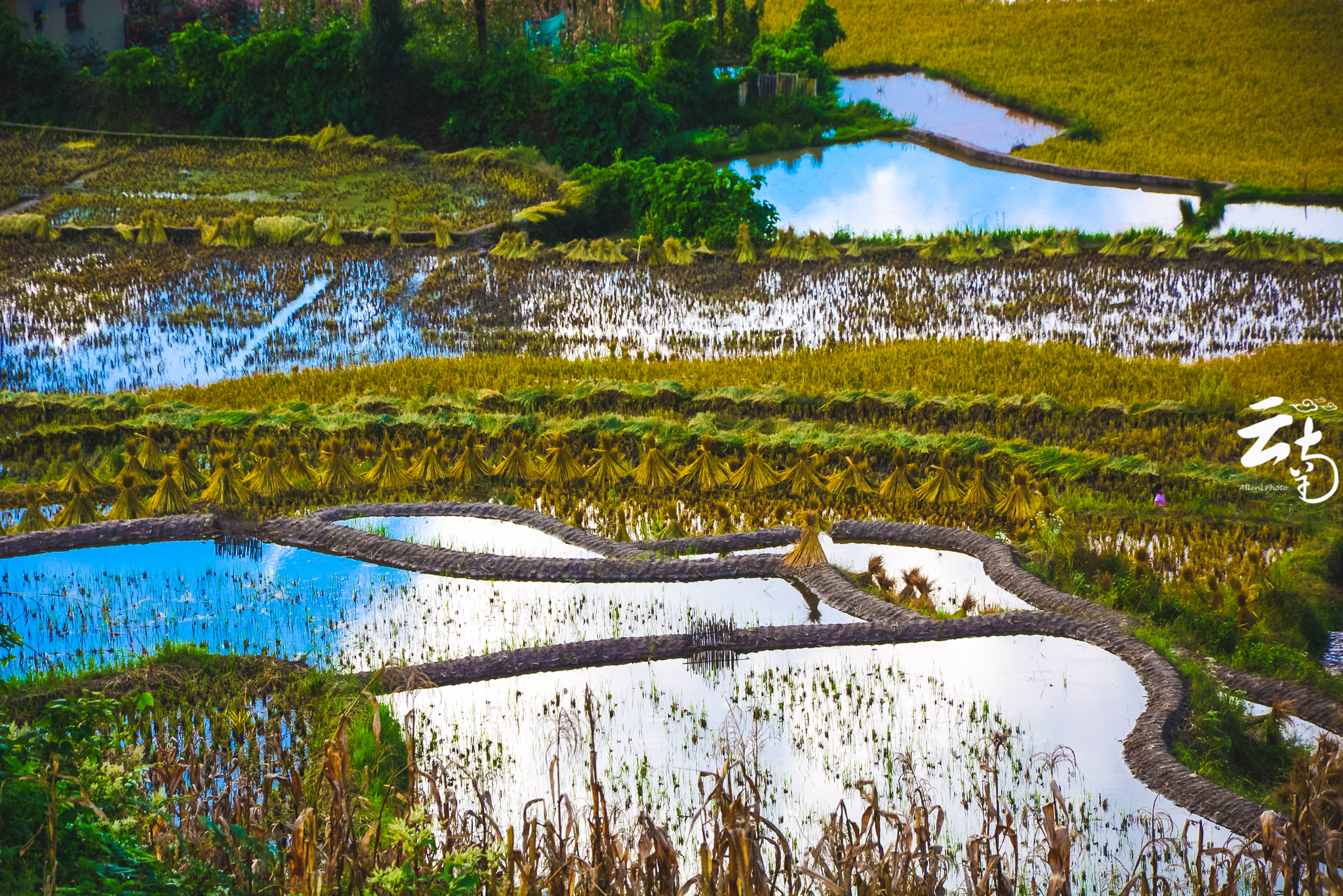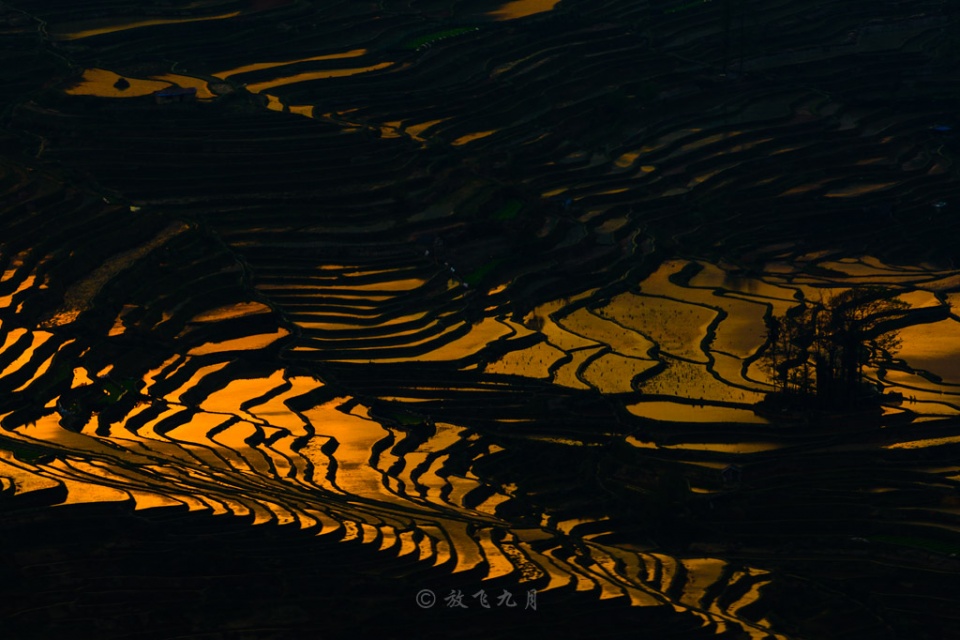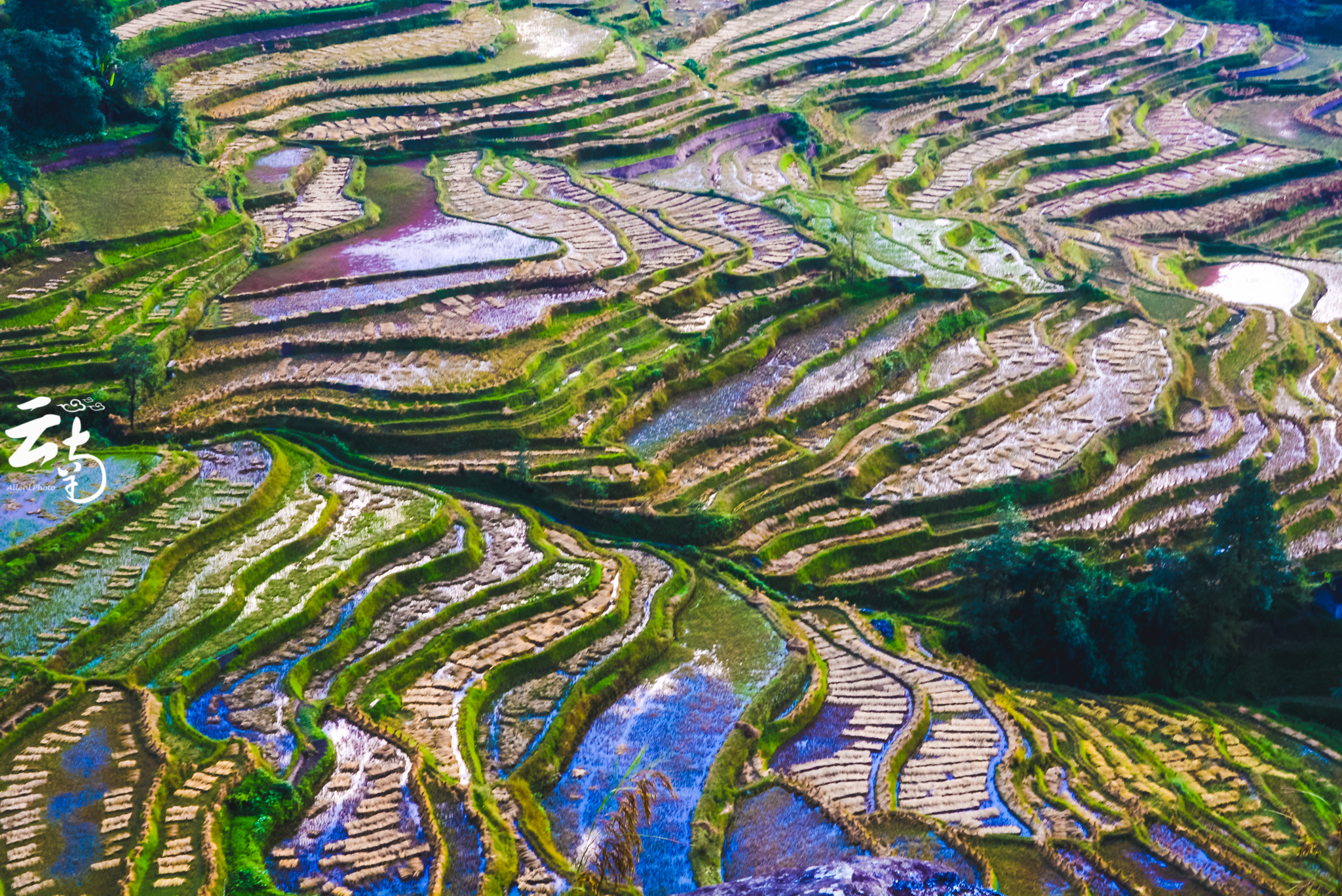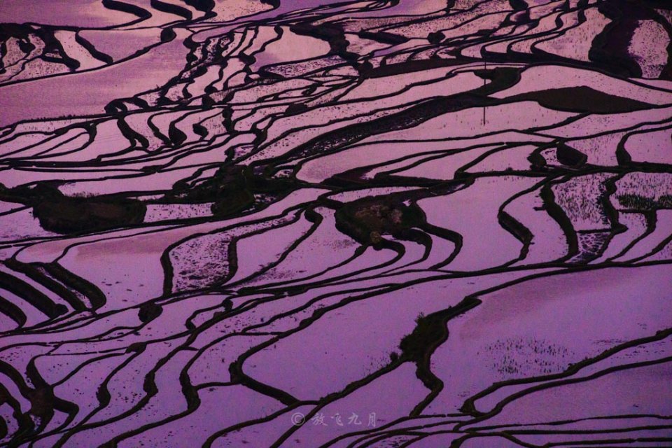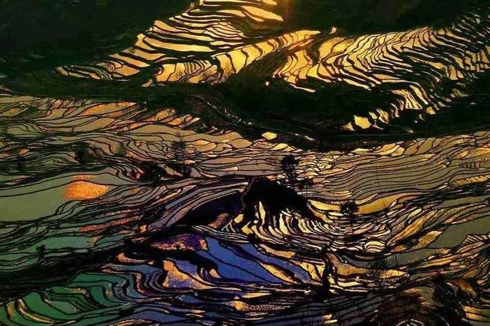 梯田的人,描述或多或少都会不同,天光云影,水色斑斓,一天之间,变幻出万千姿色。