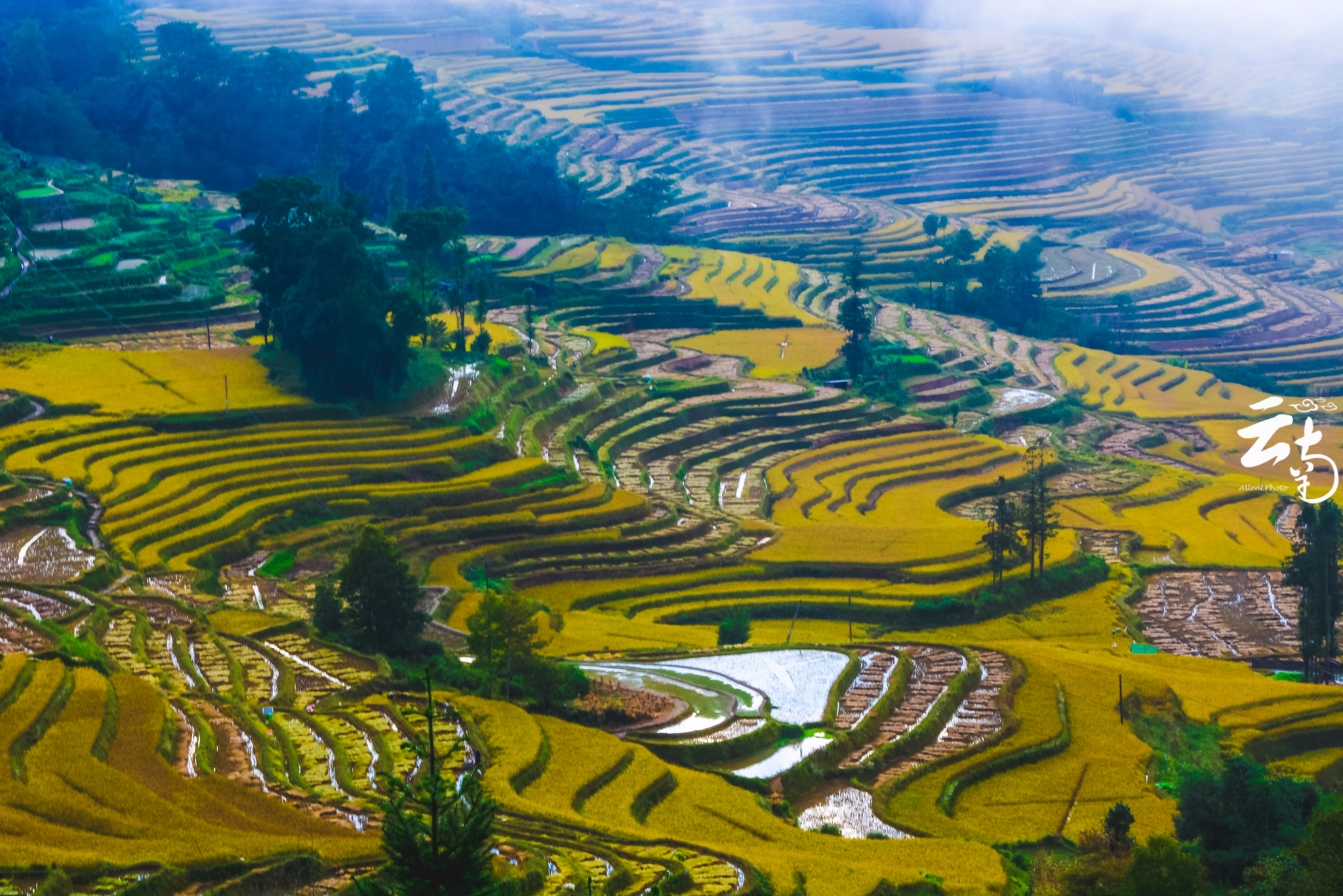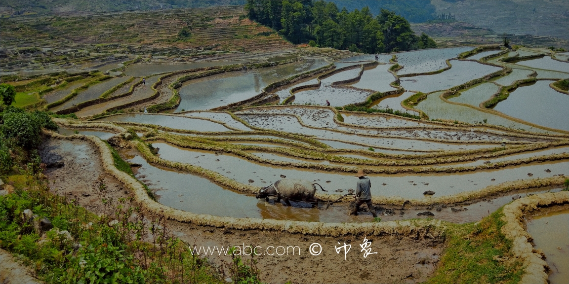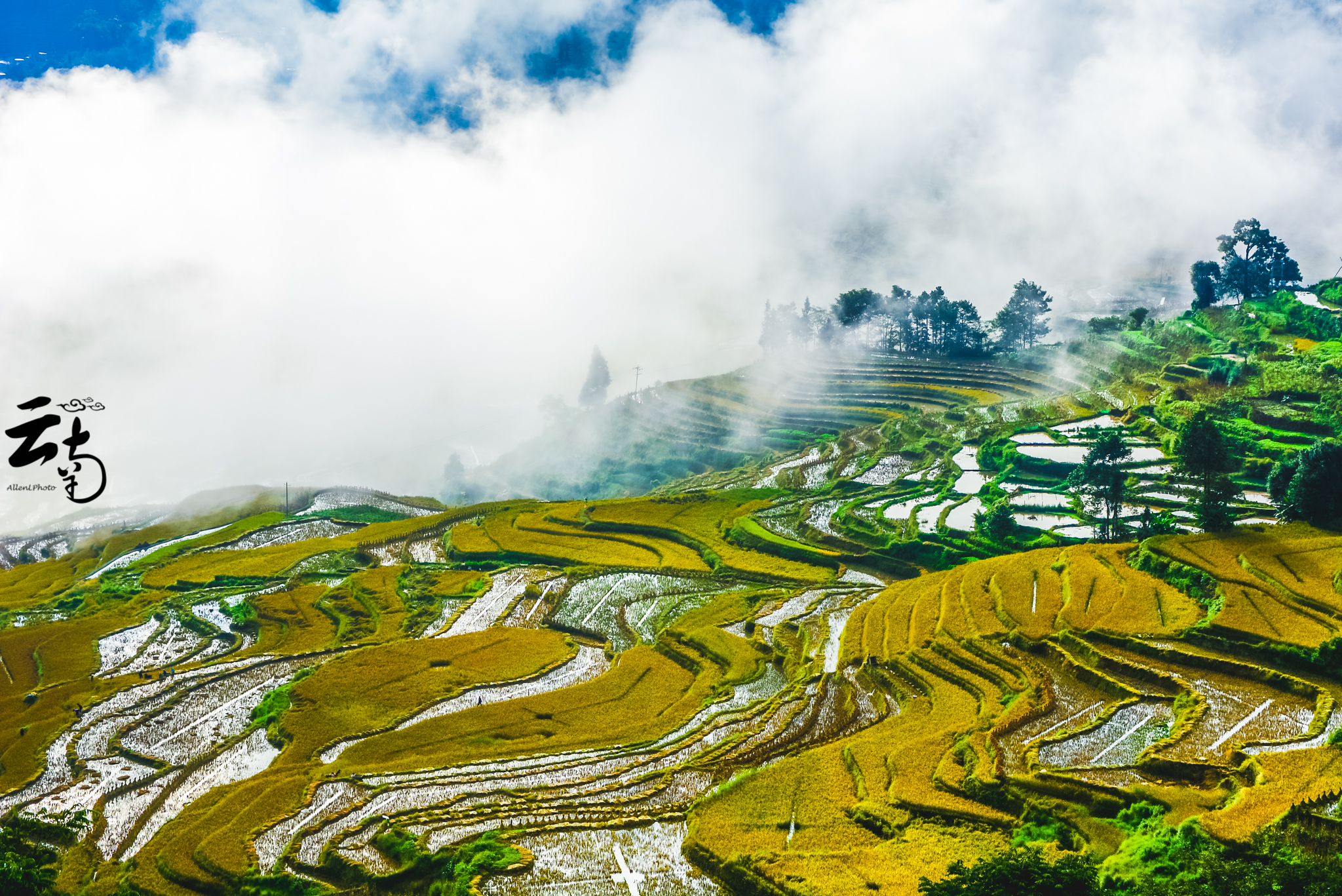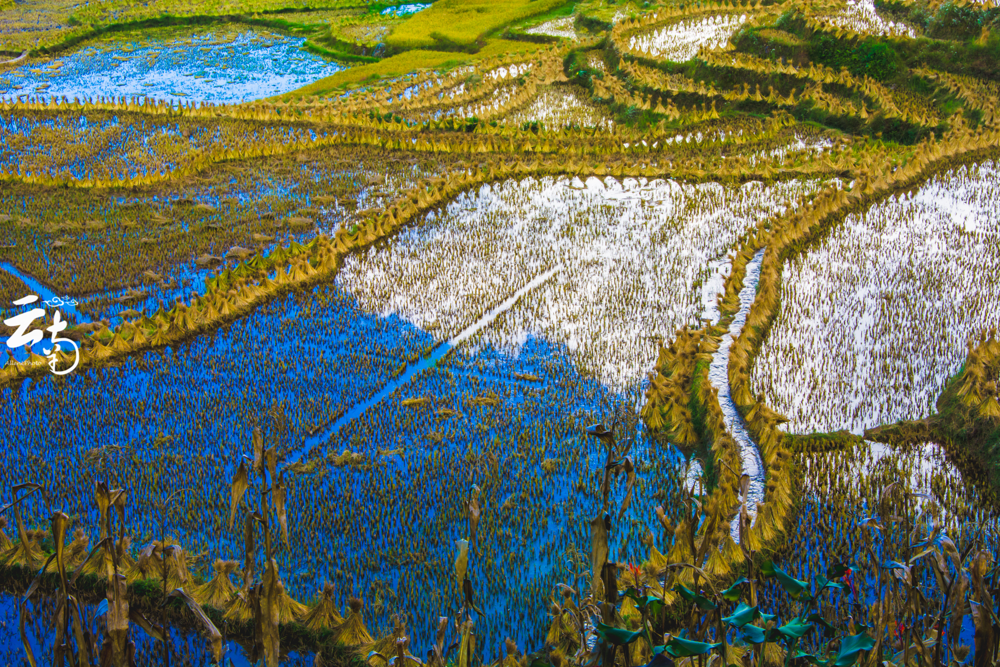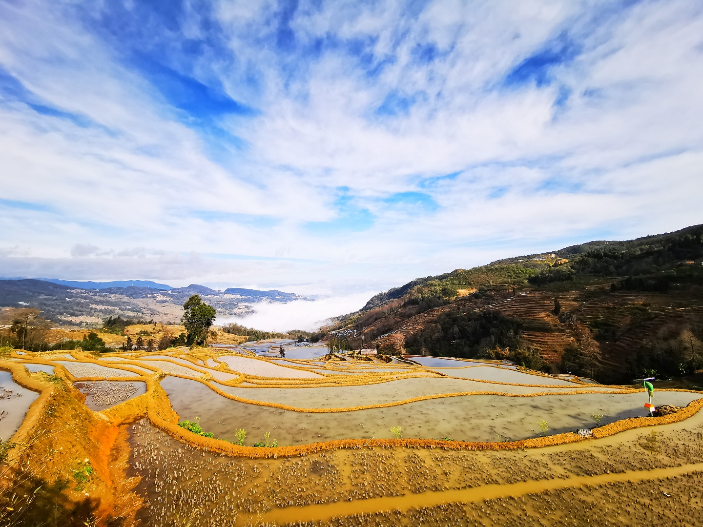 梯田的人,描述或多或少都会不同,天光云影,水色斑斓,一天之间,变幻出万千姿色。