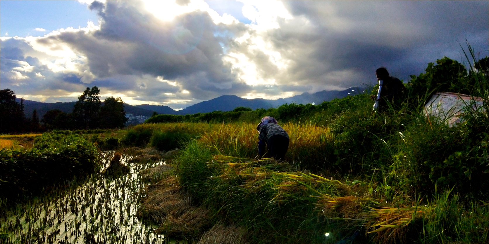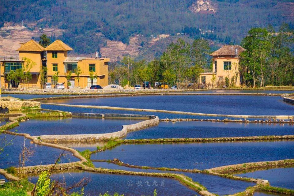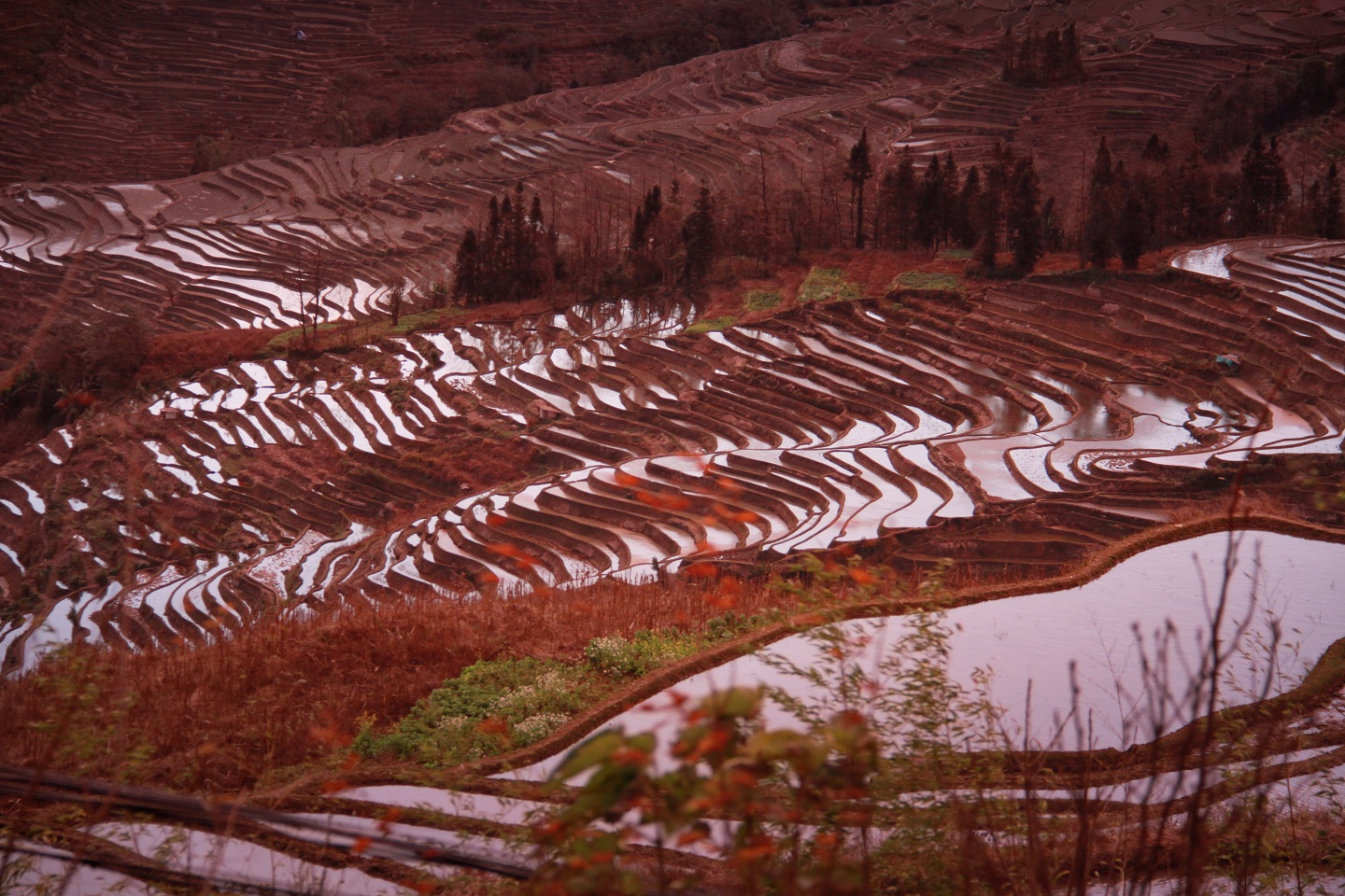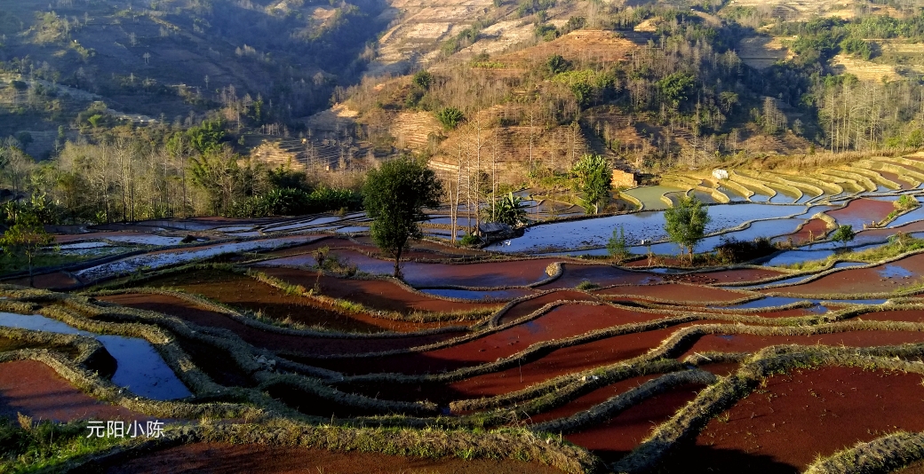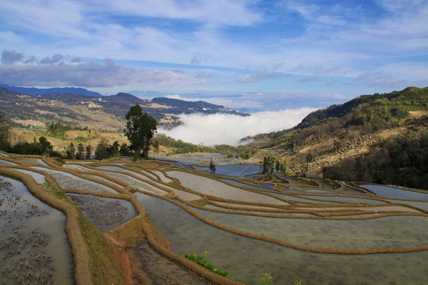 梯田的人,描述或多或少都会不同,天光云影,水色斑斓,一天之间,变幻出万千姿色。