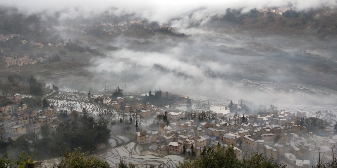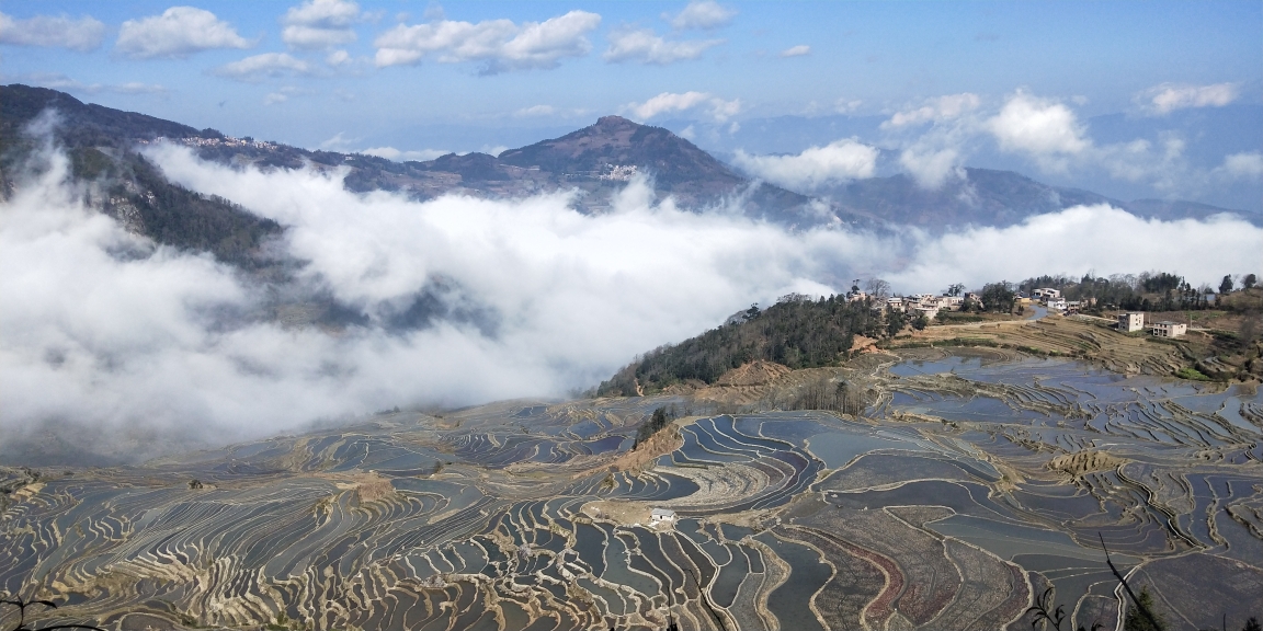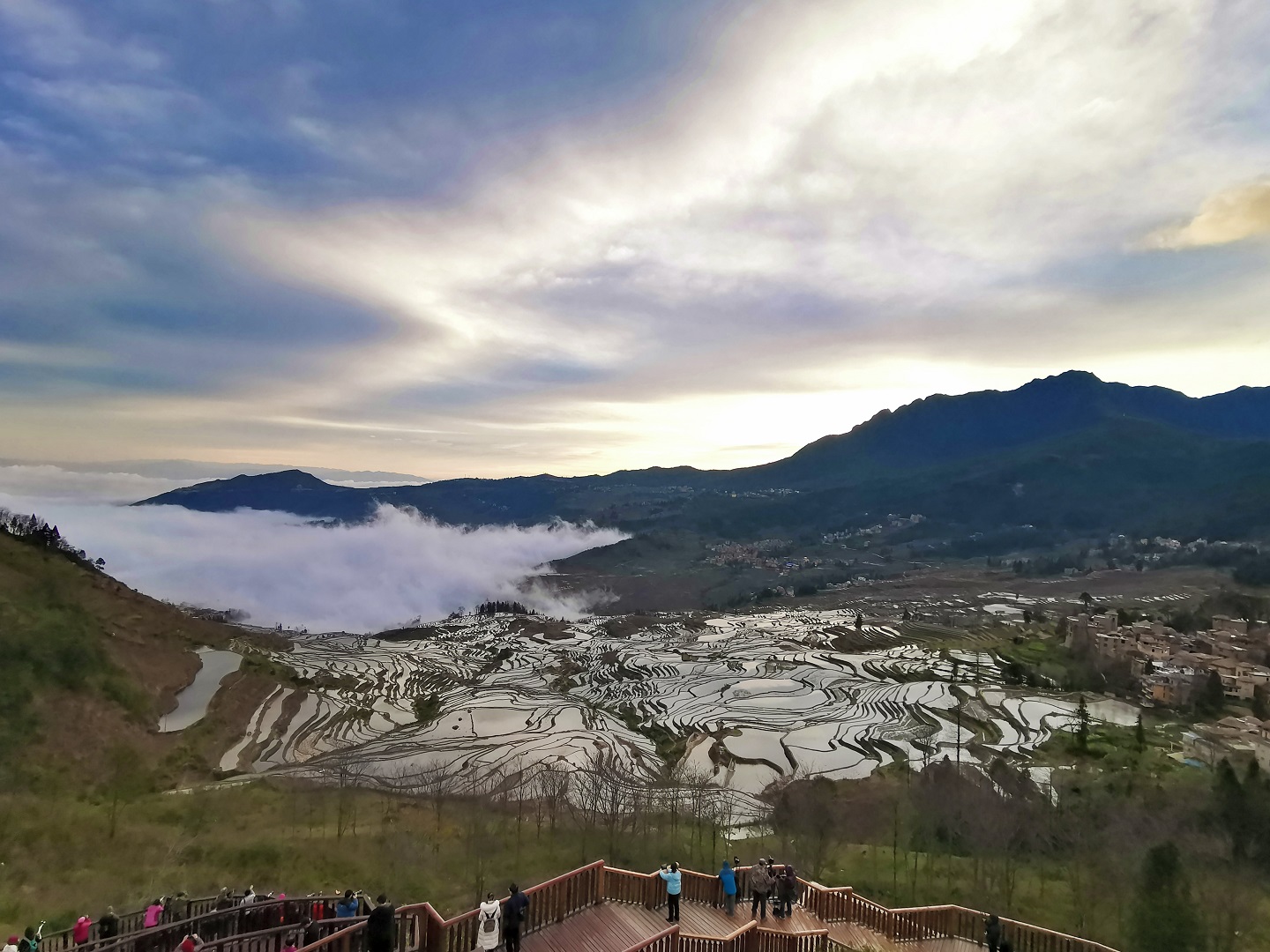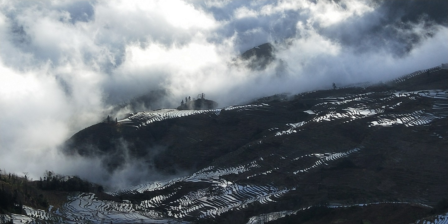 位于半圆形山梁上,是元阳梯田中面积最大的一个,景观立体而丰富,但由于季节不对,所以我们看不到更为浓烈而分明的色彩。但幸运的是,这里的耶稣光景观让我们赶上了,那样静谧而神圣的壮观景致,一直在我脑海中萦绕。