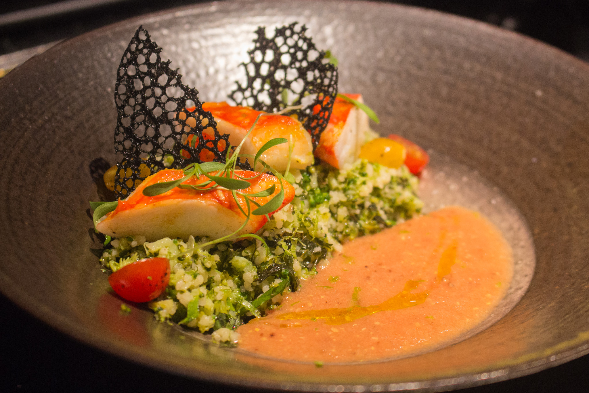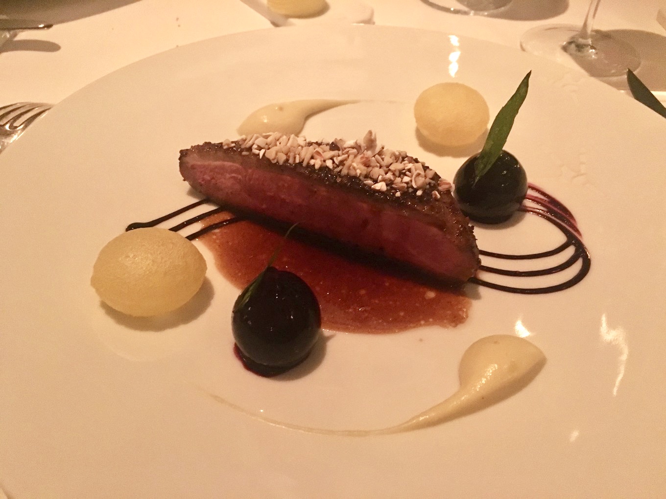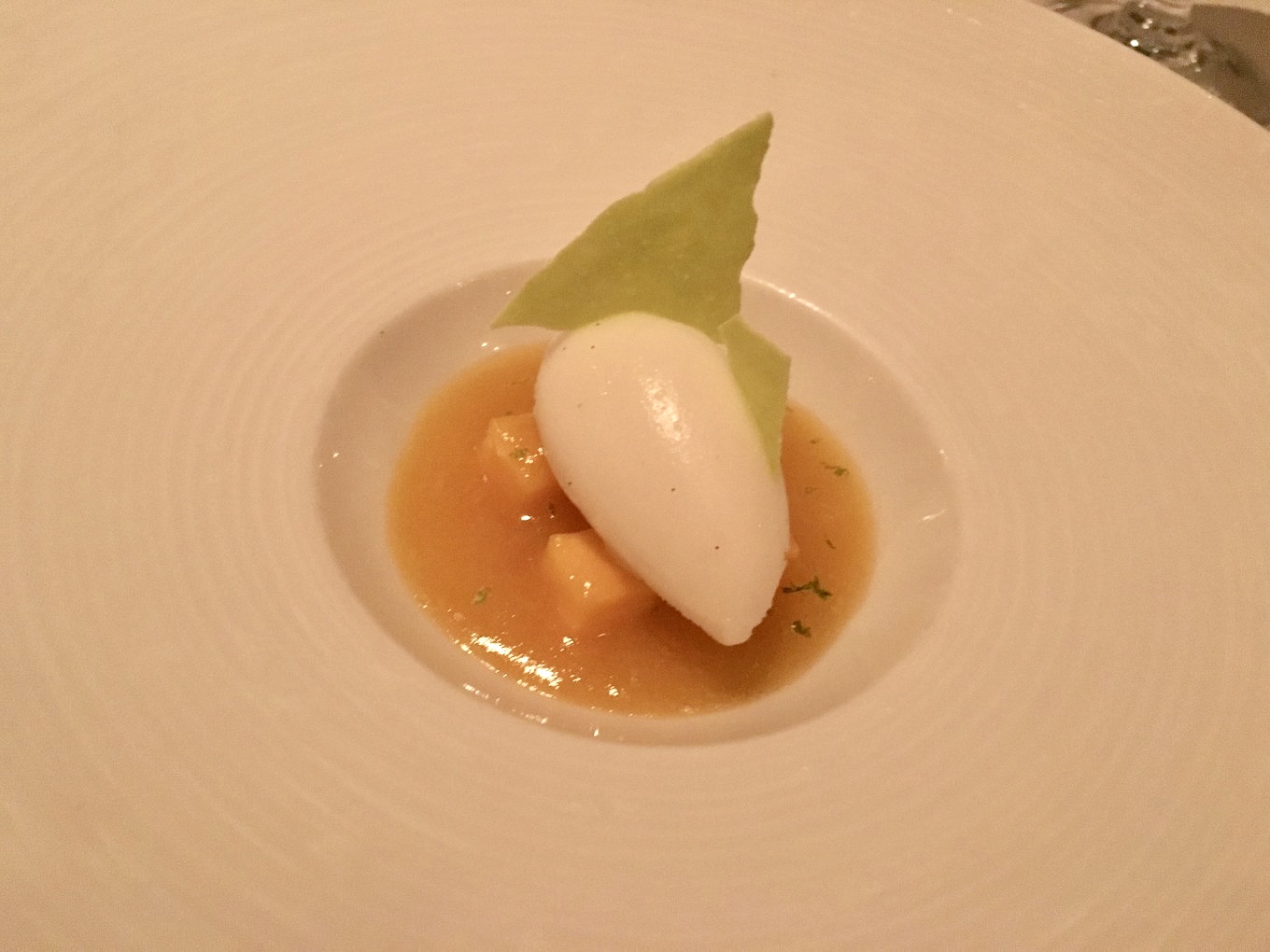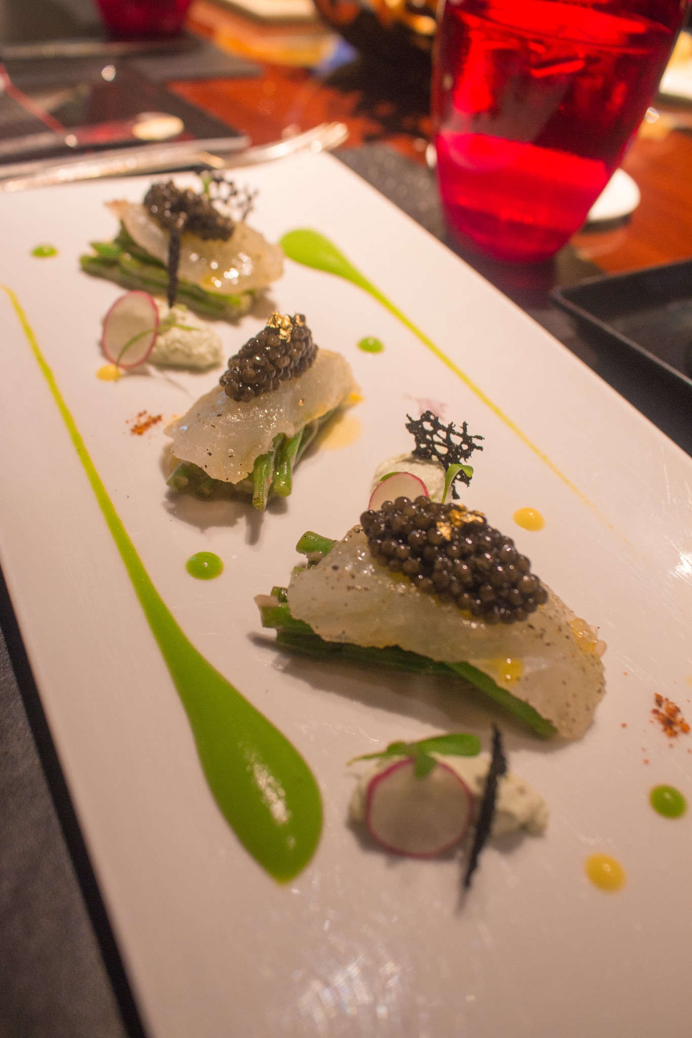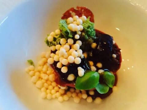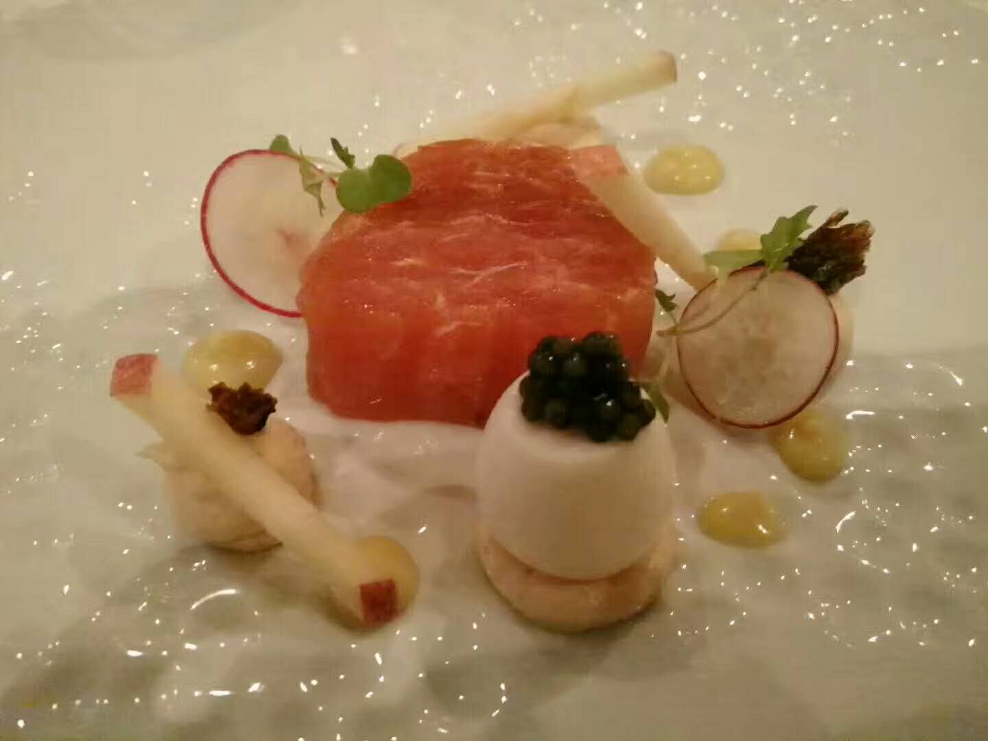 前菜鲷鱼配鱼子酱还不错,从摆盘到味道都是很夏天很清爽的感觉。