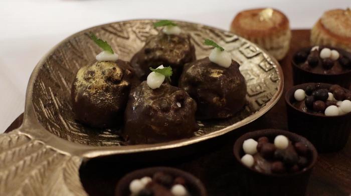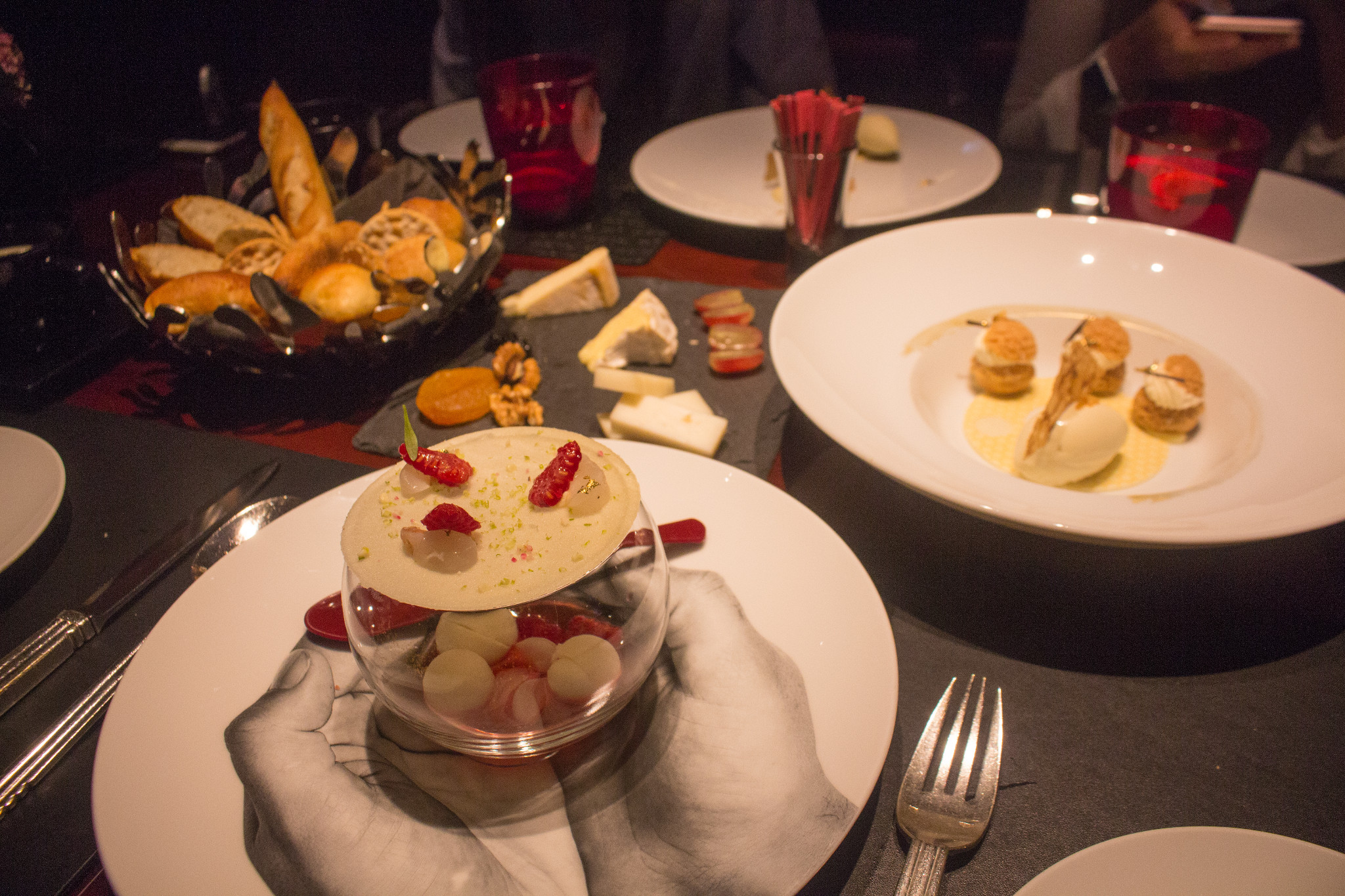甜品很腻,推荐的奶酪有些无法接受,唯有樱桃杯不错,摆盘很有创意,两只手捧在一起的垫纸,需要用勺子打破的糖衣,酸甜的果肉,好吃。