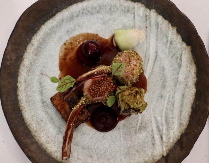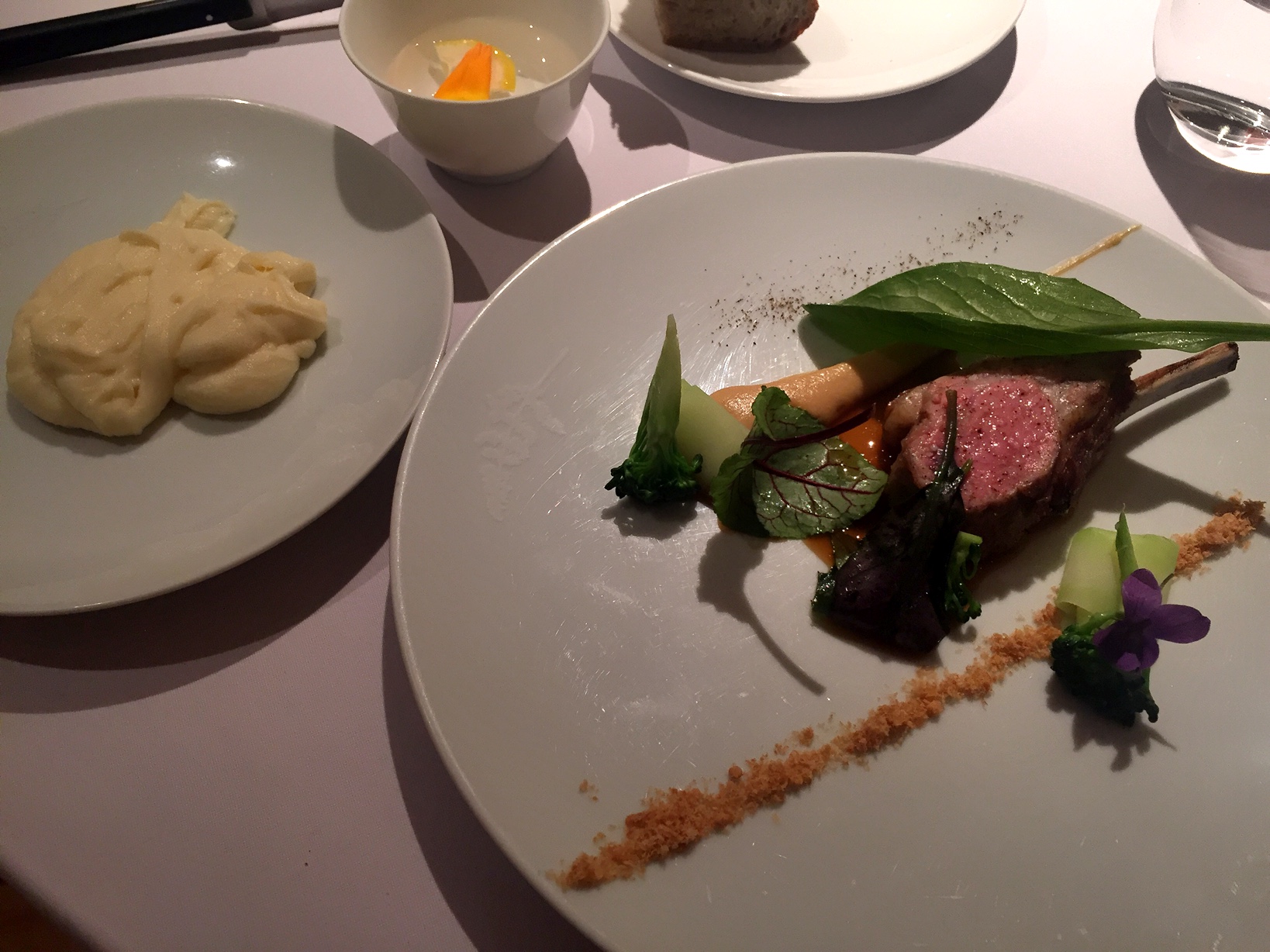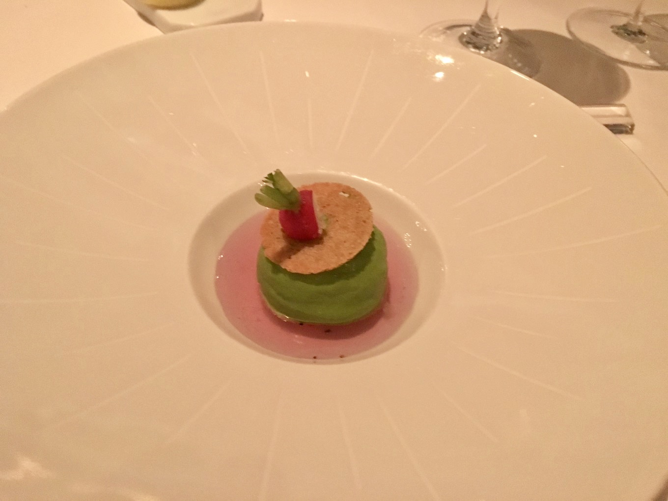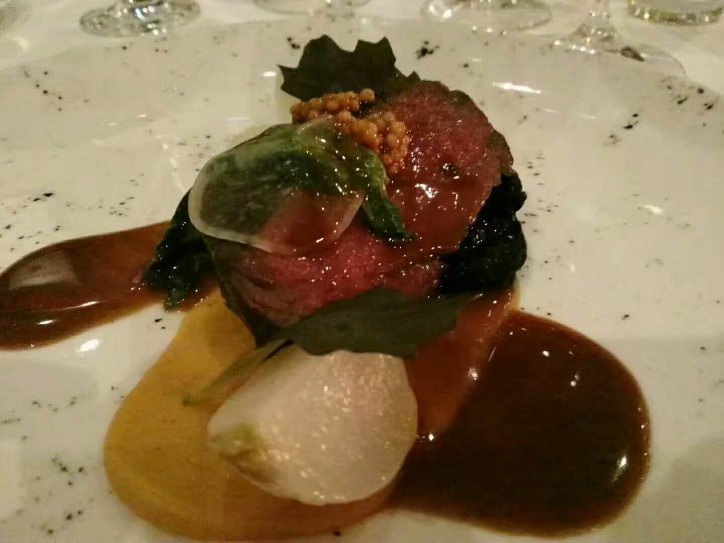 #苏格兰小羊排#——小羊排肉质很嫩,此处萝卜很有创意,一物三吃,萝卜块、萝卜片、萝卜泥,这也是米其林对食物处理的特点之一。