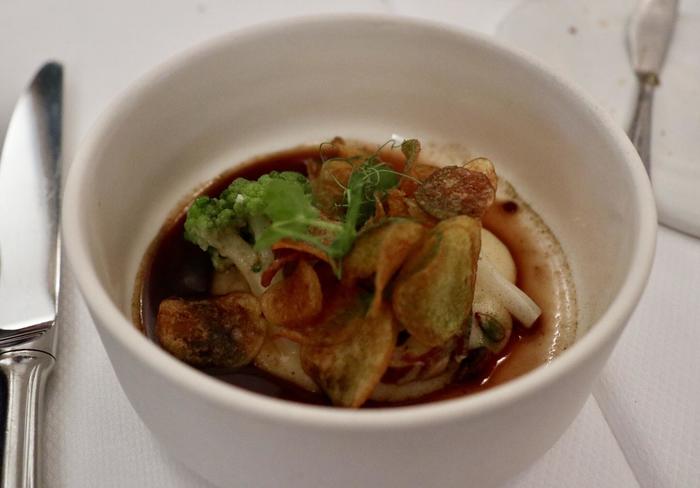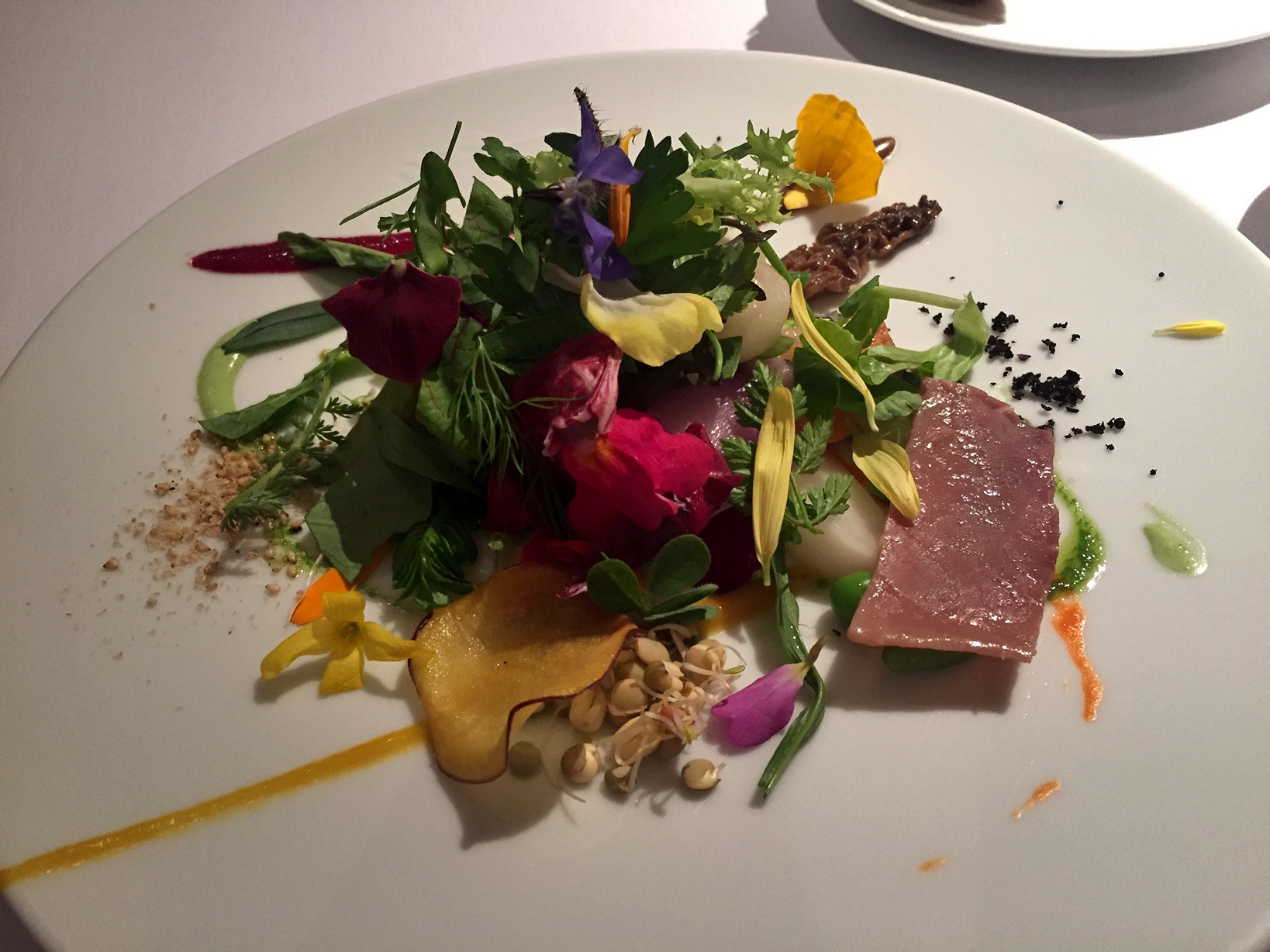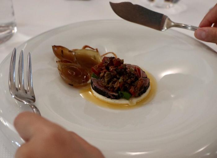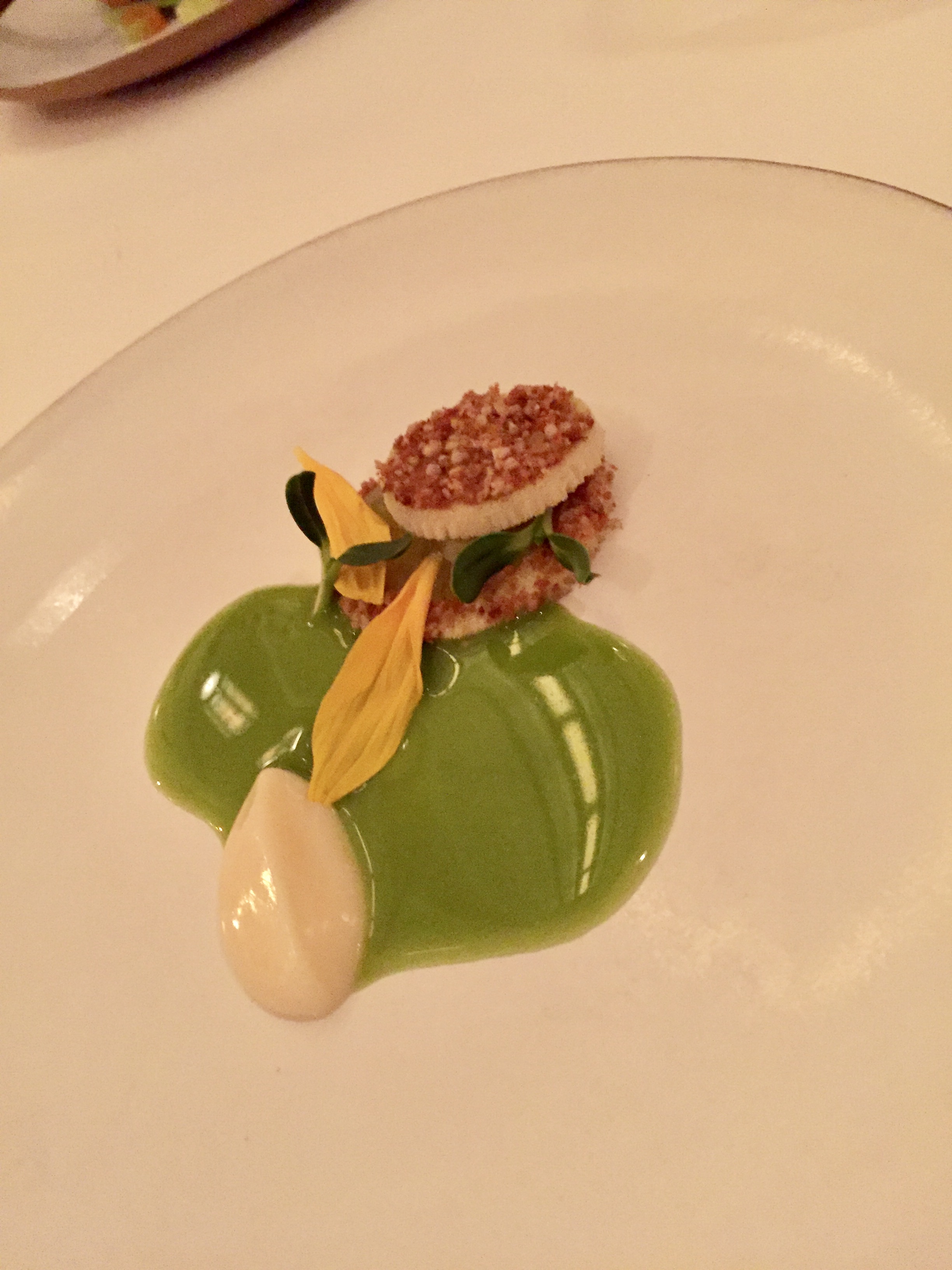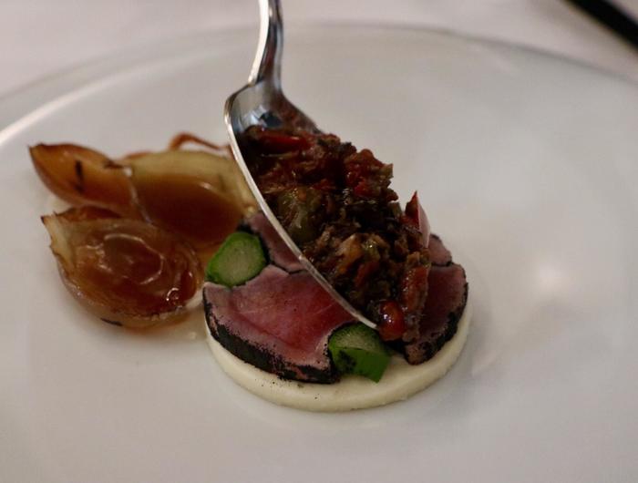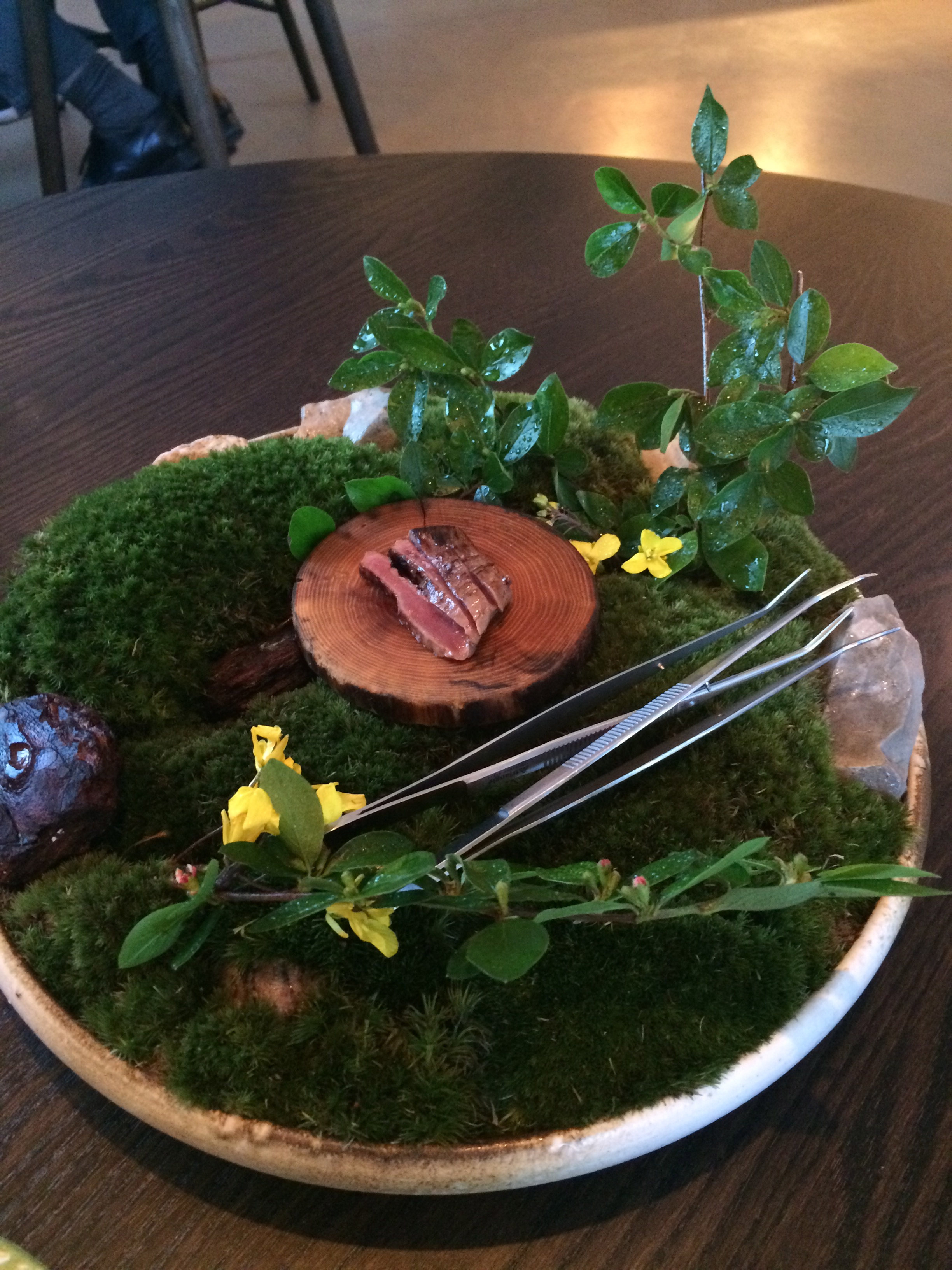 #苏格兰小羊排#——小羊排肉质很嫩,此处萝卜很有创意,一物三吃,萝卜块、萝卜片、萝卜泥,这也是米其林对食物处理的特点之一。