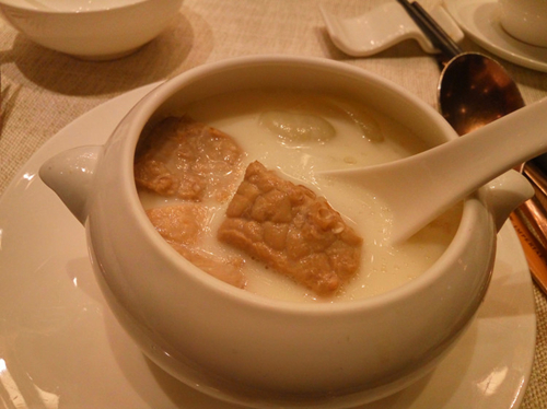 人貌似对肺头汤特别情有独钟。可是我全程无感,白白的浪费了食材新鲜的肺头。不过杏汁熬成的汤倒是味道还行。总之 ,是一道让人欢喜让人忧的菜品。