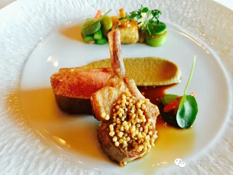 香烤羔羊排+鹅肝。同样在吃法上也讲究几分熟最能品出食材的最原始的味道。餐厅推荐的是5分熟,用刀叉切开后,就会感觉到如同教科书般的五分熟,丝毫不差一分。在切的时候,完全可以感觉到羊排的肉质粉嫩,包含着满满的汁水。拍完照 ,就开吃了,否则凉了就影响口感了,哇~入口即化!