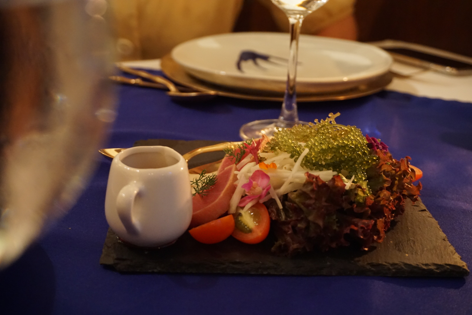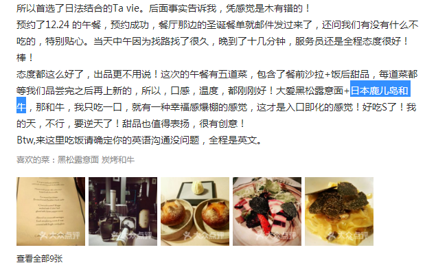 其实吃什么已经不重要,大部分菜的原料混搭之丰富、口感层次之细腻,会让你觉得每一口你吃下去的都是艺术品。每上一道菜,服务员毕恭毕敬的神情,以及专业具体的讲解,使得那顿晚餐仪式感十足。餐后还会非常有礼貌的询问用餐意见。