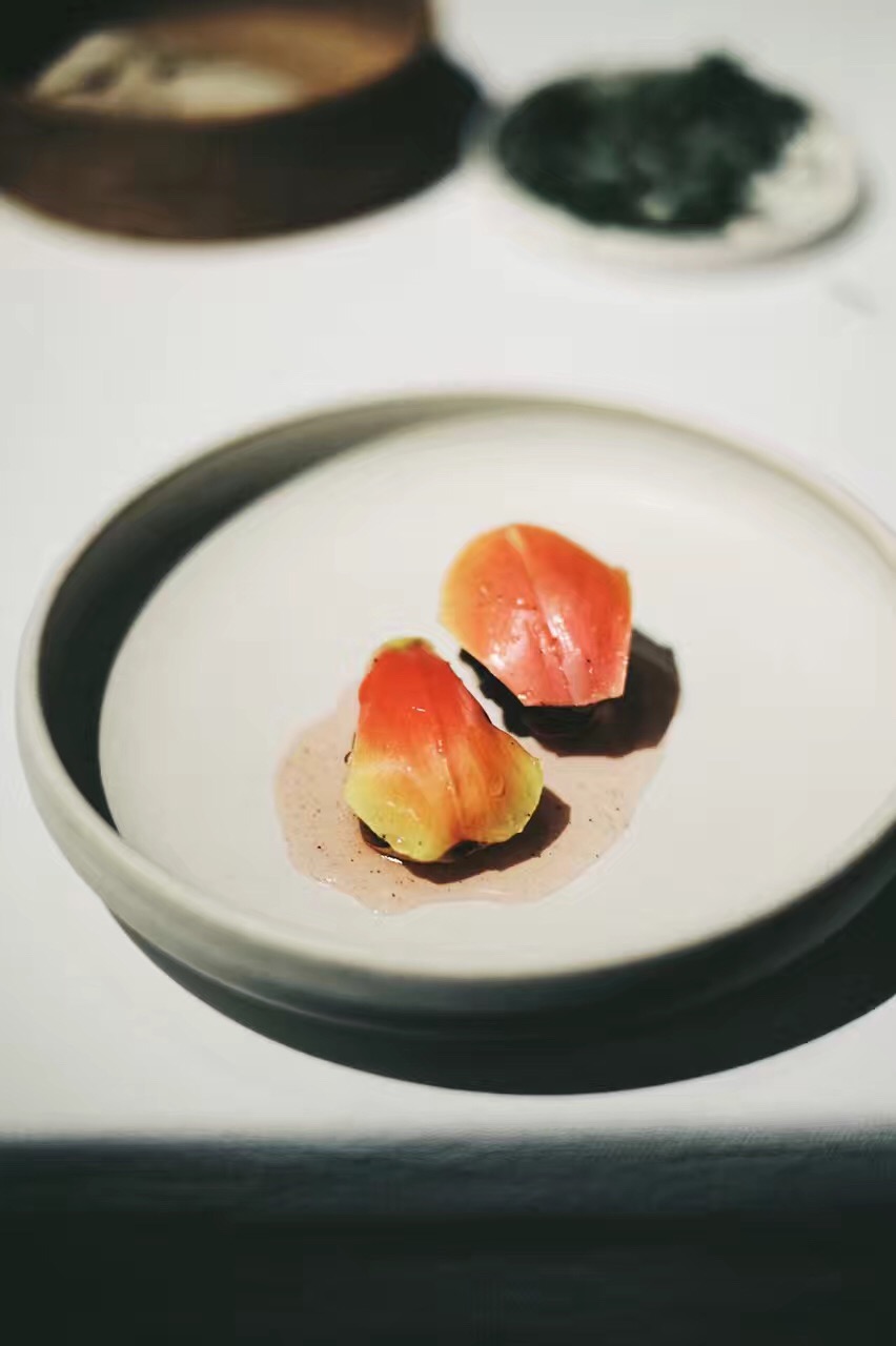 选用的盘子也是经过精心筛选的,和食物本身是一个色系的。知道米其林餐厅的用心与考究。颜值始终在线。