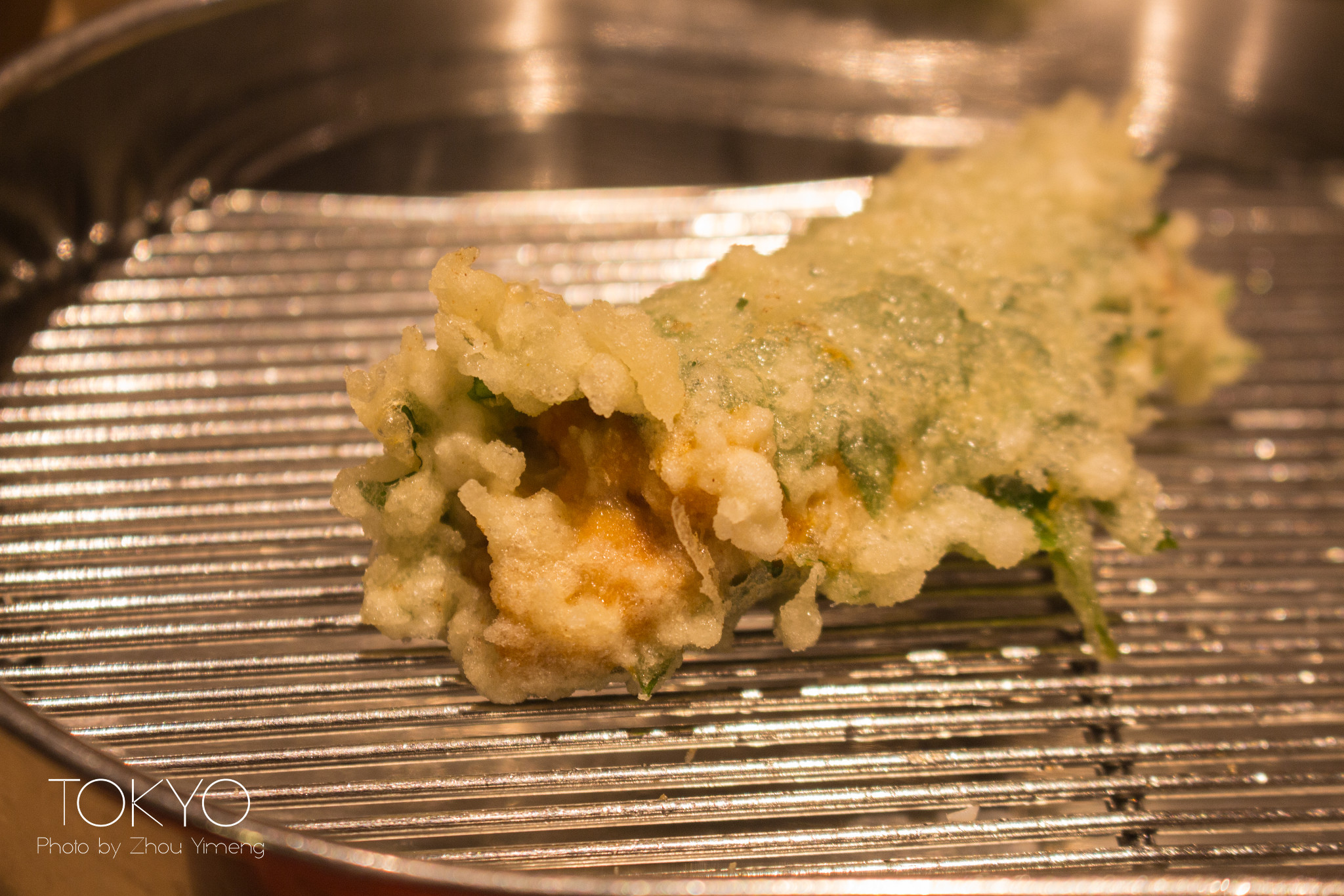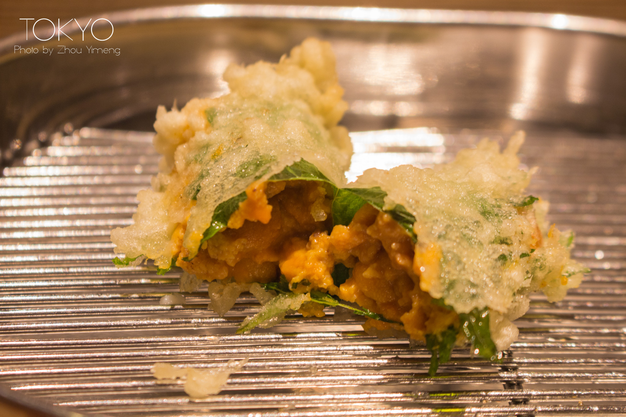 是山居的当家菜紫苏包海胆,没想到也是这里的招牌,上次吃过最怀念的一道天妇罗,这里做的也同样的好吃。海胆鲜甜,还能吃到紫苏的香气,好吃。