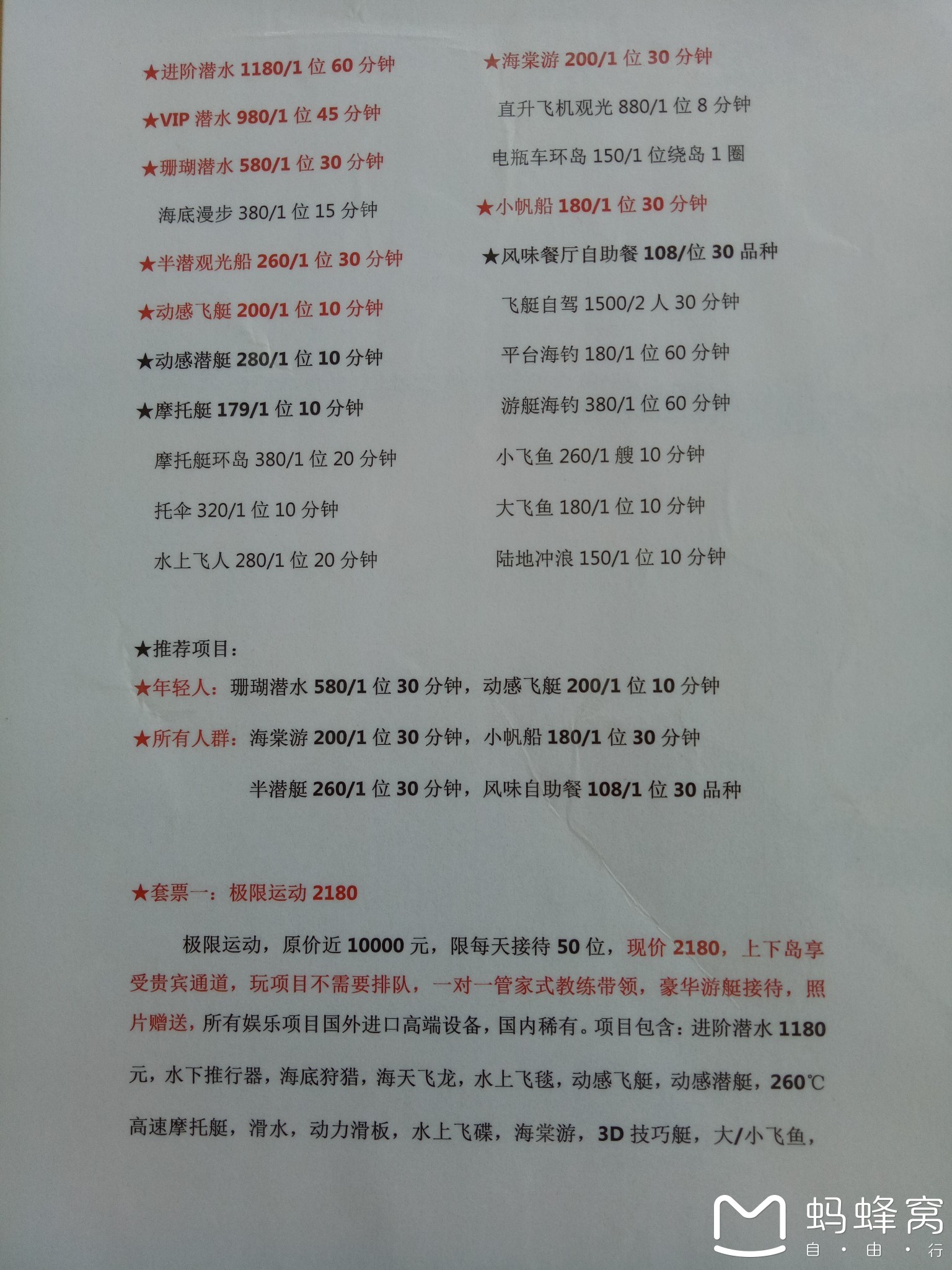 缺点是:游客多,无论淡季、旺季,都可能遇到排队的情况。另外蜈支洲岛的潜水也是这几个潜水基地中较贵的那一个。蜈支洲岛的潜水分为珊瑚礁潜水、趣玩潜水、高级进阶潜水、DSD探索潜水等。这部分从蜈支洲岛的官网就可以查到,或者找到蜈支洲岛的公主号,也能看到娱乐项目的具体信息。