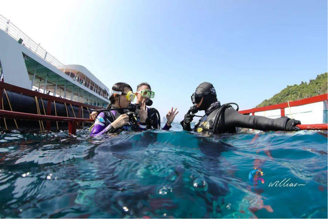 潜水体验的基本步骤是什么?不同的潜点有不同的要求,比如说分界洲岛吧。分界洲岛的潜水需要在岛上的游客中心买票(即使网上买好了,也要去这里提供信息),然后跟着教练去换上潜水服,简单的理论知识学习,之后乘坐快艇去潜点,再排队等着教练领着你下水,之后潜水体验结束,再去冲淡。