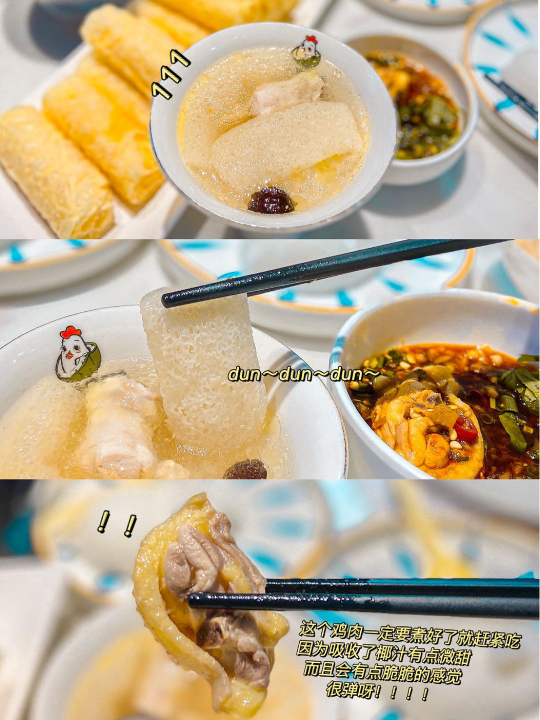 对海鲜没兴趣,就从海南口味的椰子鸡开始。海南本地的 萌 哒 哒 椰 子 鸡, 口 味 清淡 ,自 然 香 甜 ,果 味 清 爽 ,有 鸡 肉 的鲜 美 。 萌 哒哒 椰 子 鸡 是“ 土 生 土长 ” 的 本 地椰 子 鸡 连锁 , 味 道 香浓