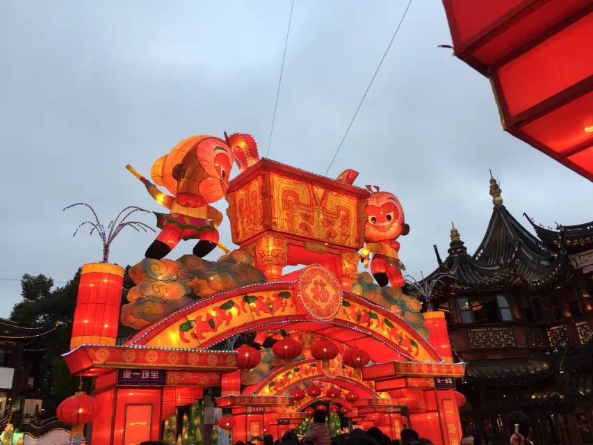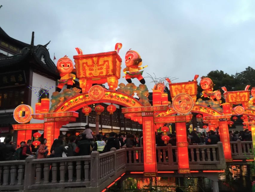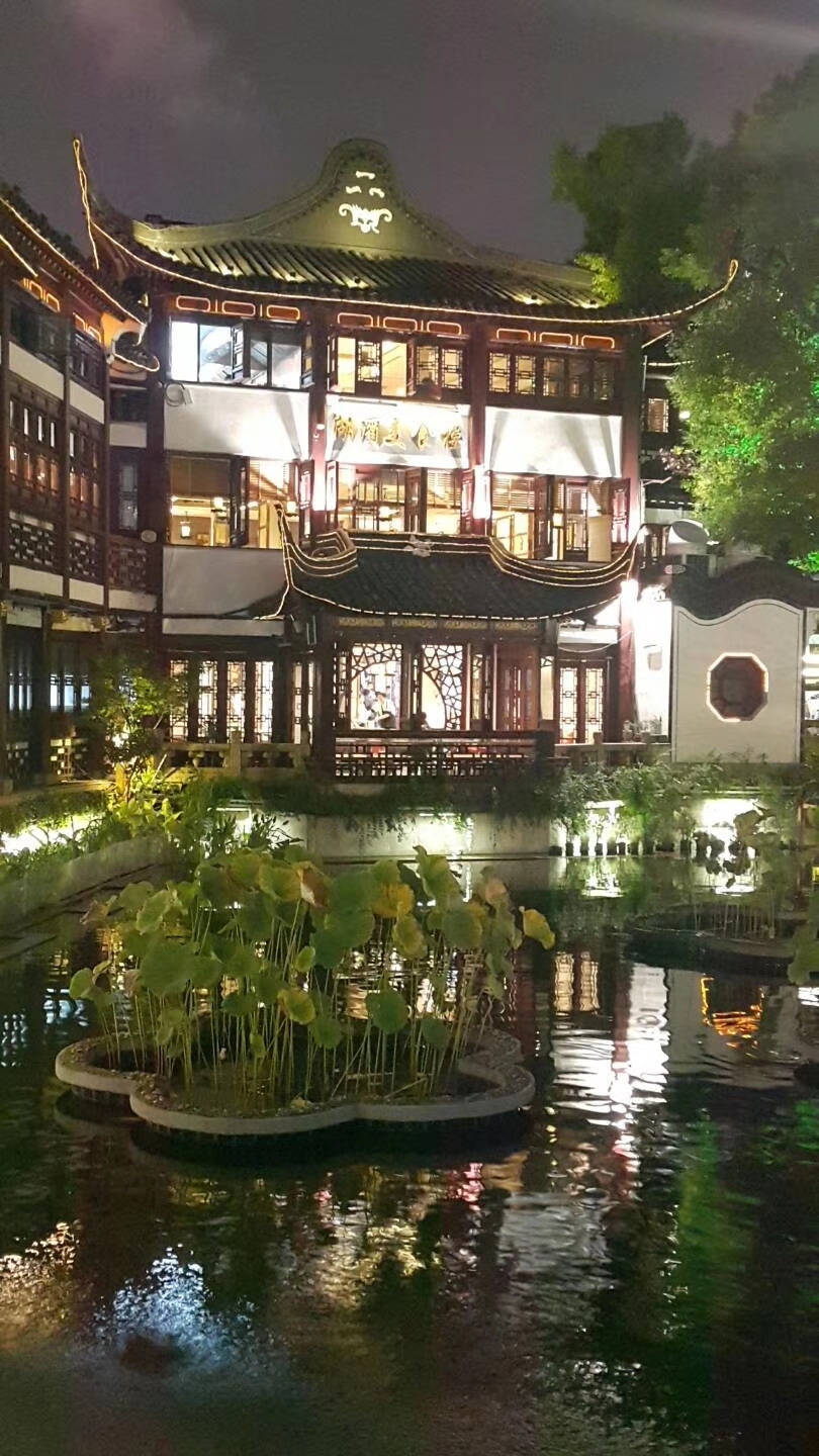豫园的位置就在城隍庙附近,买了城隍庙的门票拜了各路神仙,穿梭着行走在拥挤的步行街上,各种叫卖,各种晃眼的灯光,还有只能前进不能后退的步伐。大家来这里也是走走看看,有的地方连驻足的空隙都没有。除了本土特色的小吃,在城隍庙这一带还洋溢着来自各地不同的特色滋味,沿线上蜿蜒曲折的老街上举目可见各式酒楼,餐厅,食店,在比肩接踵的人流中到处可见手捧刚出炉的包子、酥饼,这一切都使这里成为