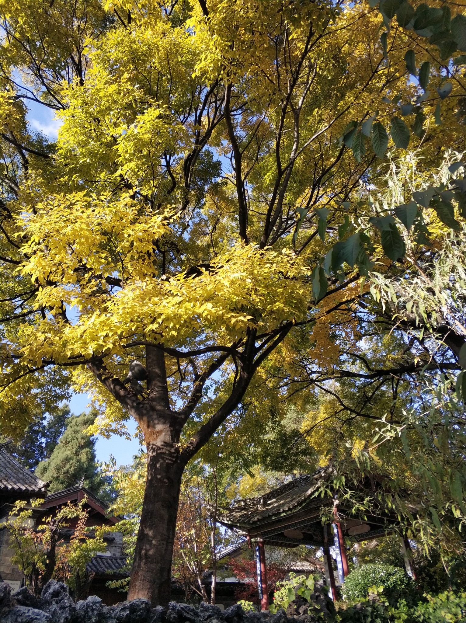 每年冬季11月-12月,大研古城的树会陆续黄了!这是古城最美的季节!尤其大石桥边,树黄了之后特别美。