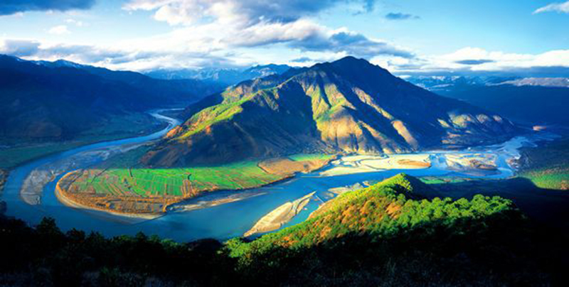 梅里雪山是云南最壮观的山群,海拔6740米,澜沧江和怒江分东西两侧从山脚下流过。