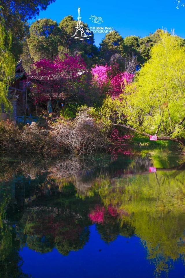 三月的,海棠花开。而九鼎龙潭,就是最美的地方!阳光下,雪山流下来的水,映成倒影,光影与色彩的完美结合!