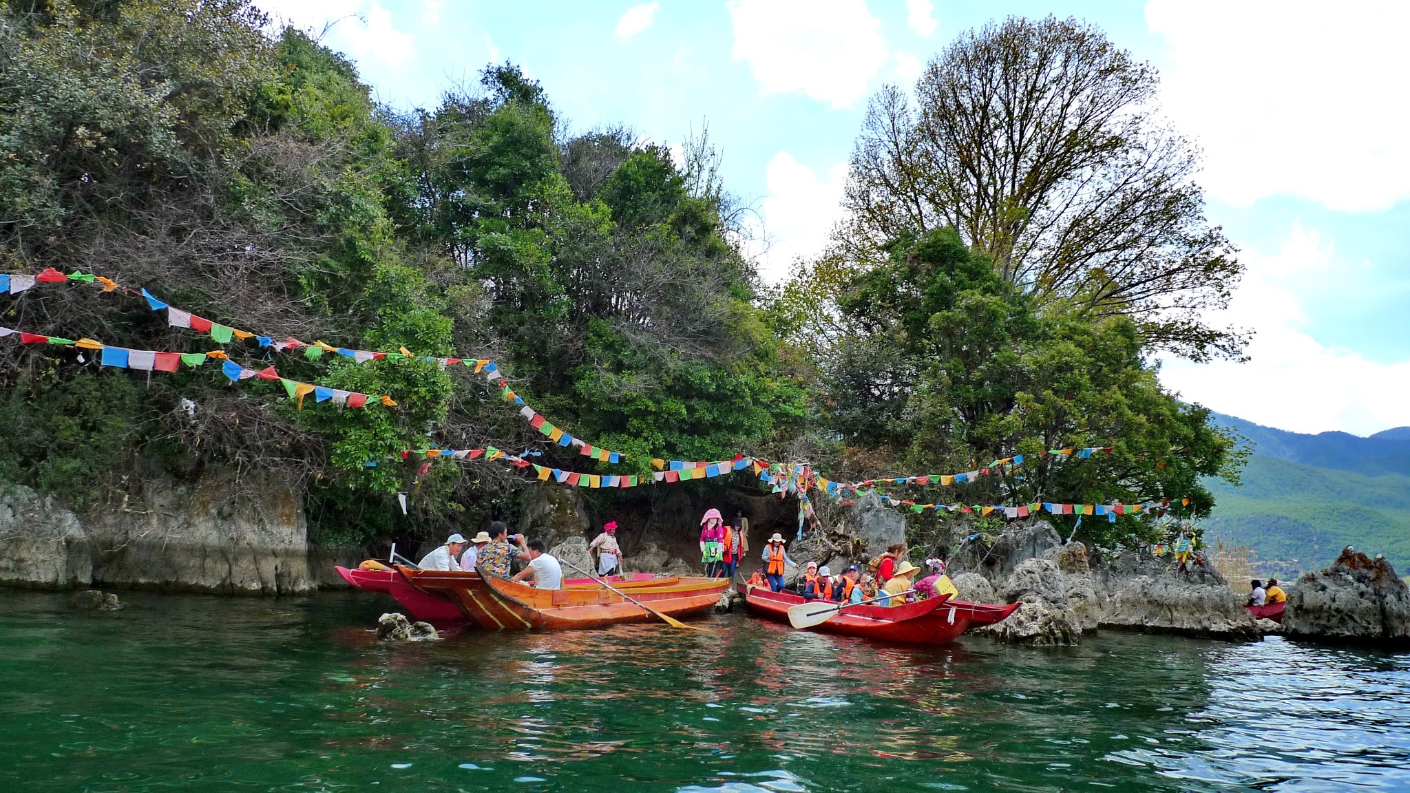 最著名的猪槽船,一定要体验一次哦。乘坐完猪槽船,你还可以骑马游湖,近距离体验与摩梭村寨的风情。