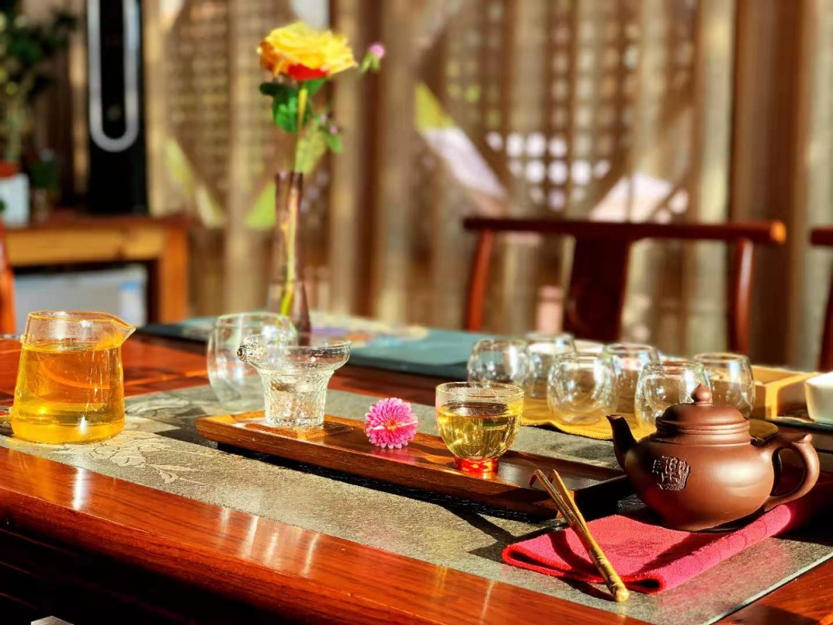 ,总是能让人忘记时间的,你可知人的一天,是从早上11点以后开始的,阳光透过窗户折射在古老的木凳上,泡上一壶沐庭古树普洱茶,细细的,慢慢的品一品······看一看阳光到哪里了再慢悠悠出门。时光,在放慢了脚步。