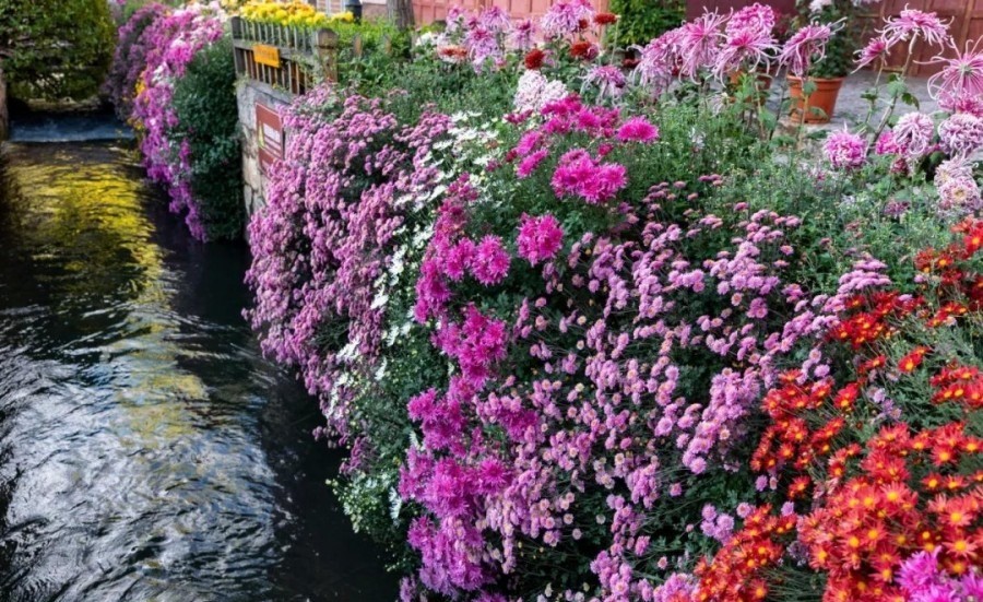 畔一年四季鲜花常开,漫山遍野,宛若天然花园。