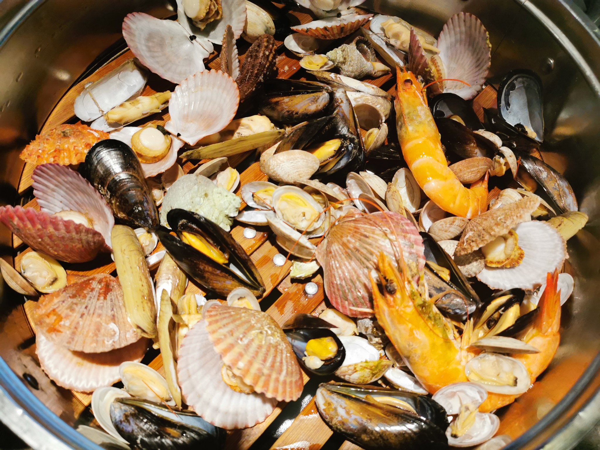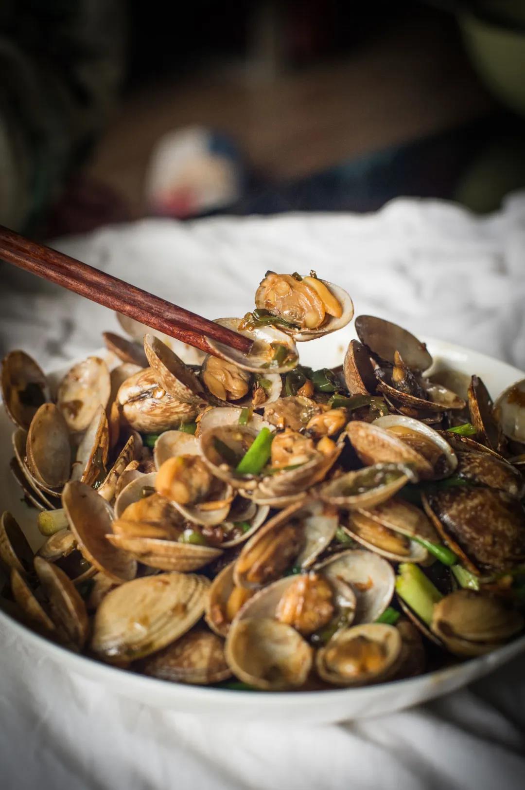 手抓海鲜:用铁铲盛海鲜上菜,还是第一次见!满满的食材瞬间就在眼前的桌子上堆成了一个小山。扇贝、海虹、钉螺、墨鱼…所有的食材都特别入味,点上一杯青岛啤酒后就可以上手吃个够啦。