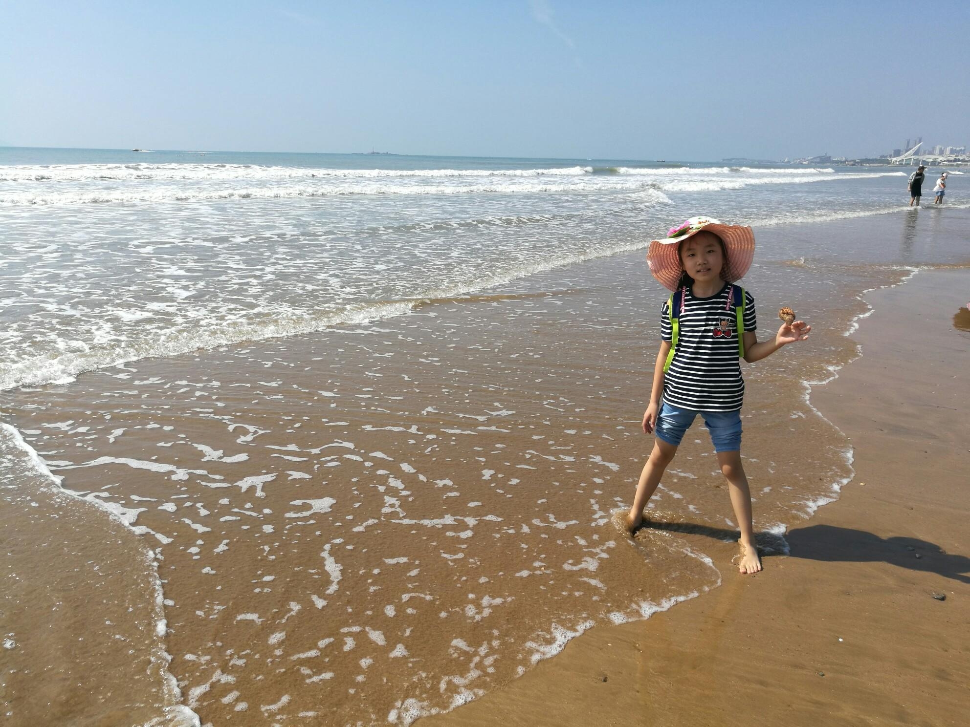 栈桥旁边也有一点儿沙滩,俗称栈桥海水浴场,可以近距离玩一下水。