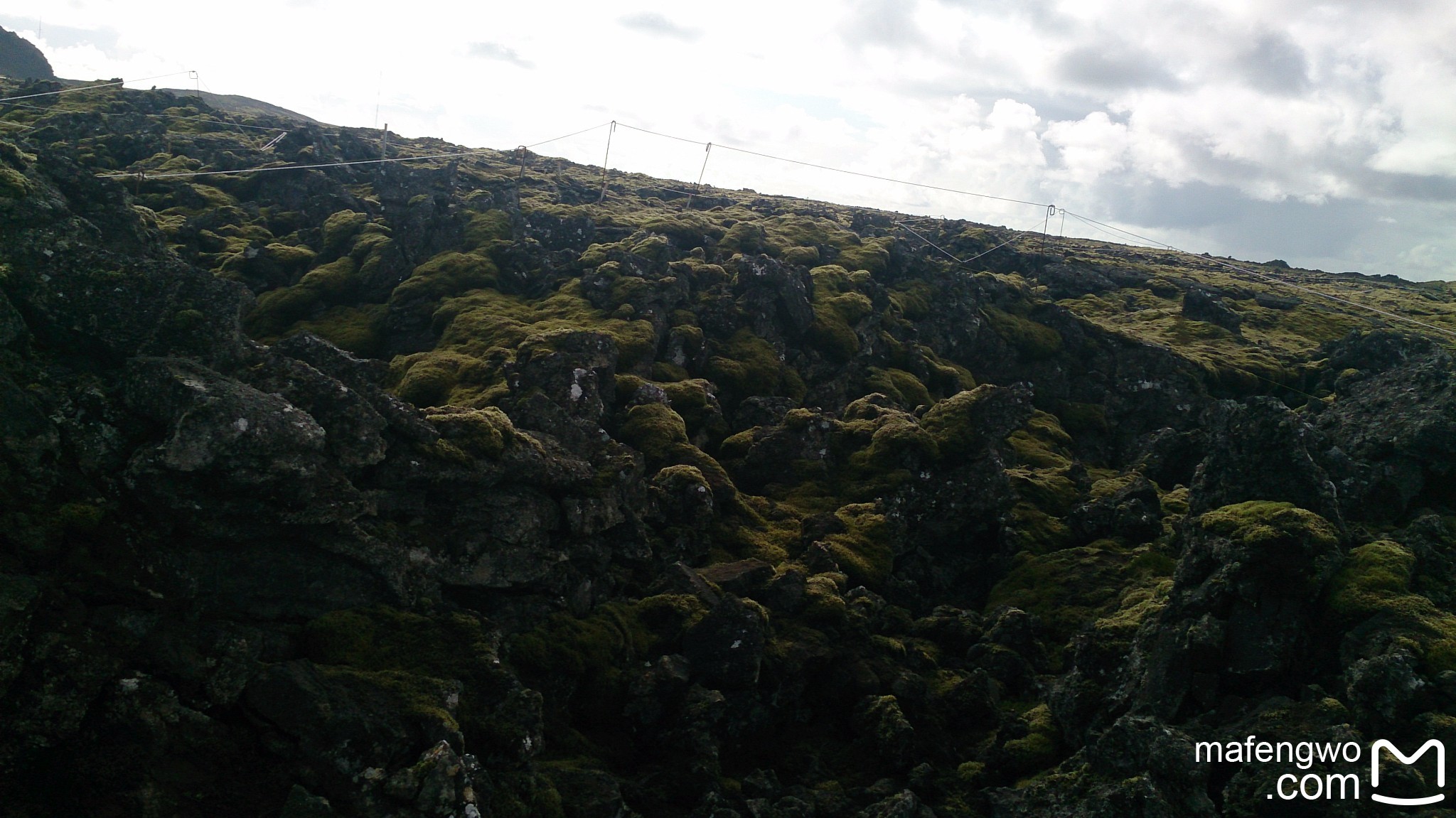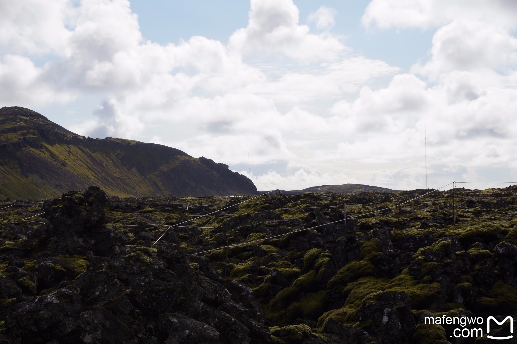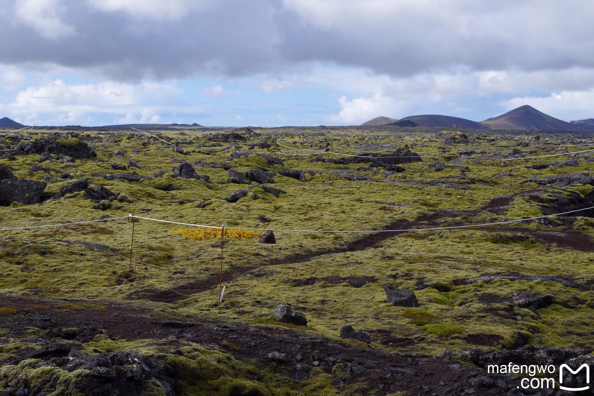 圆滚滚的火山石覆盖着绿色苔藓 大片大片的 月球上的荒凉感袭来